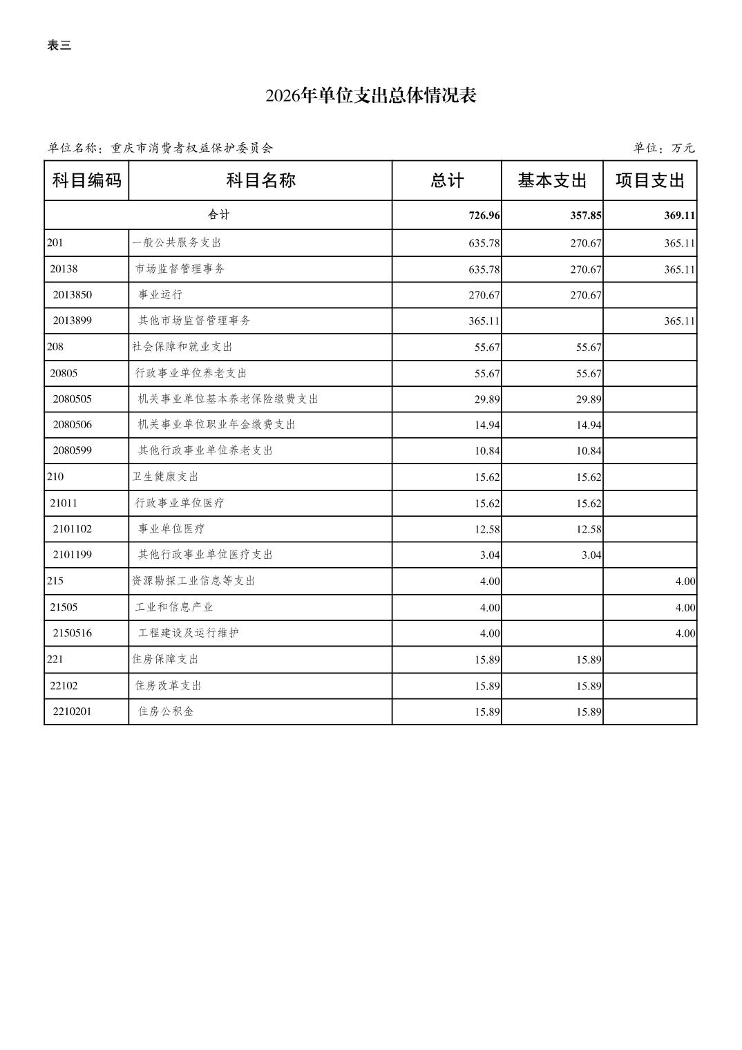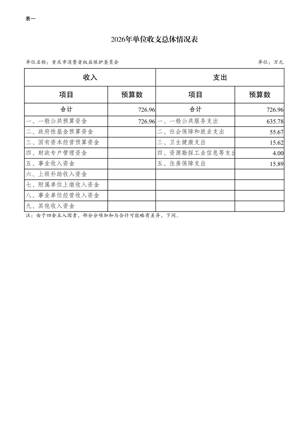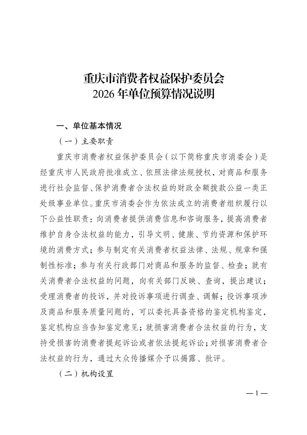 重庆市消费者权益保护委员会2026年单位预算情况说明及附表