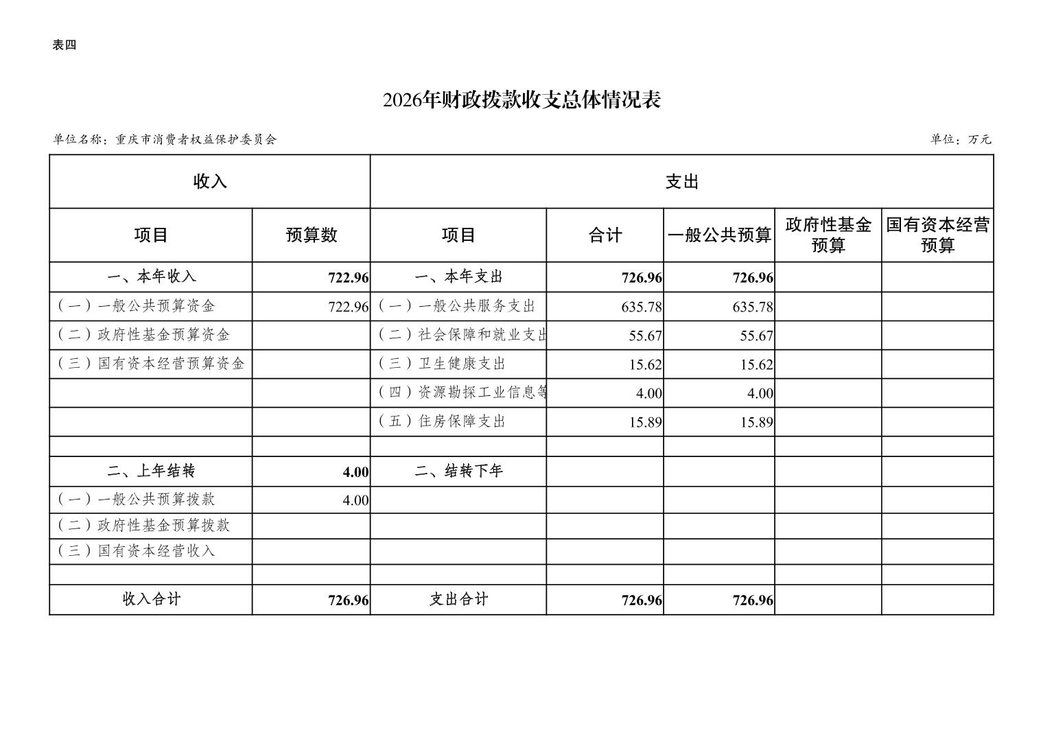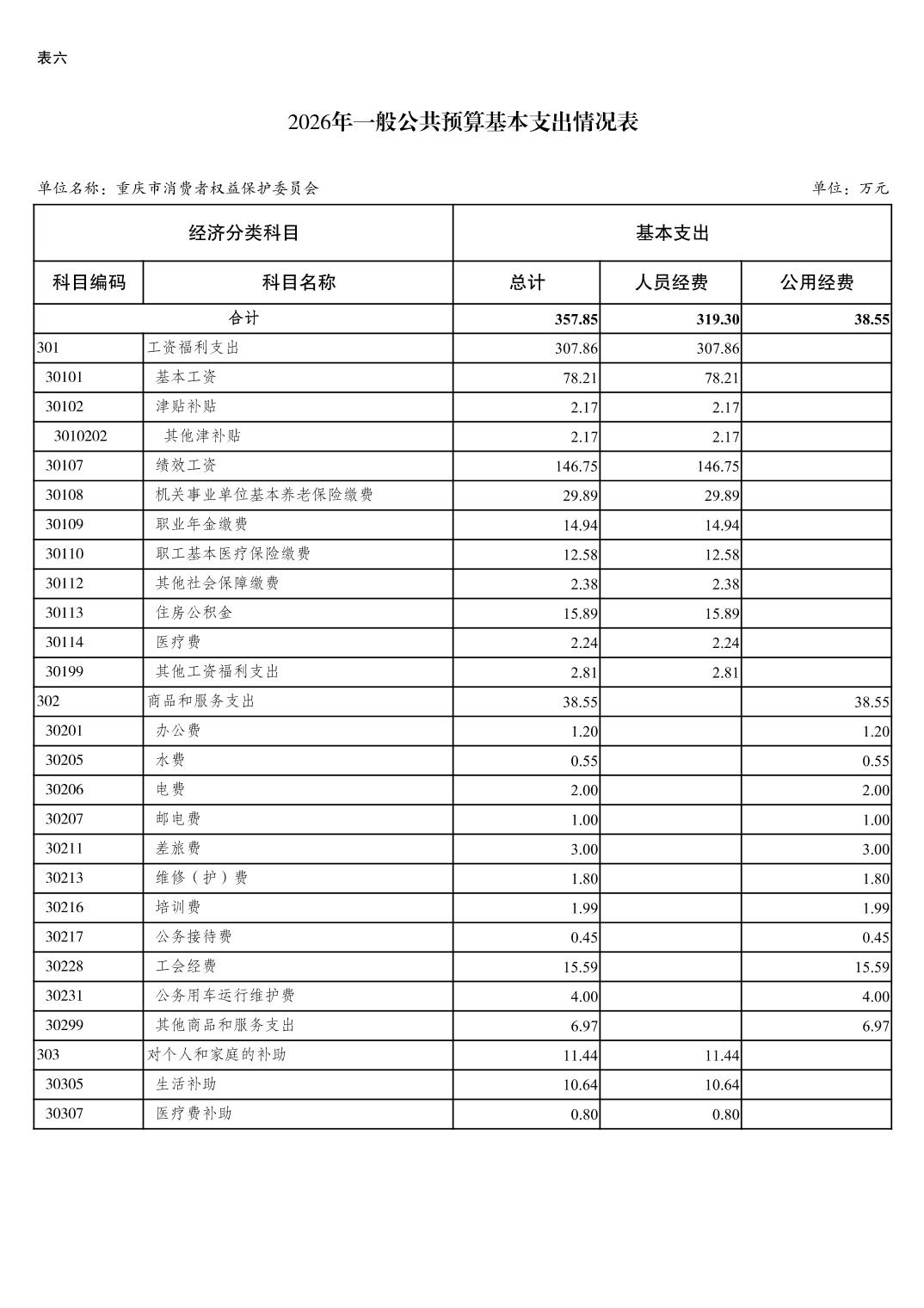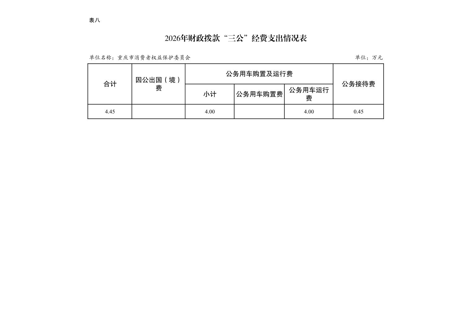 重庆市消费者权益保护委员会2026年单位预算情况说明及附表