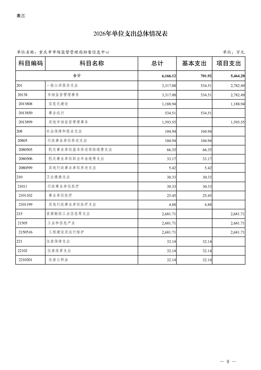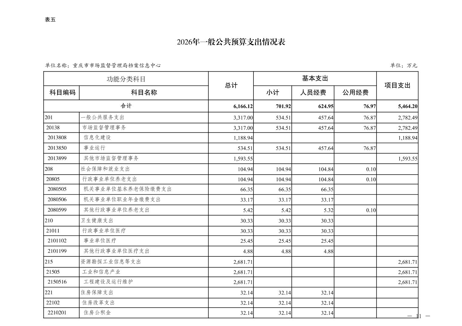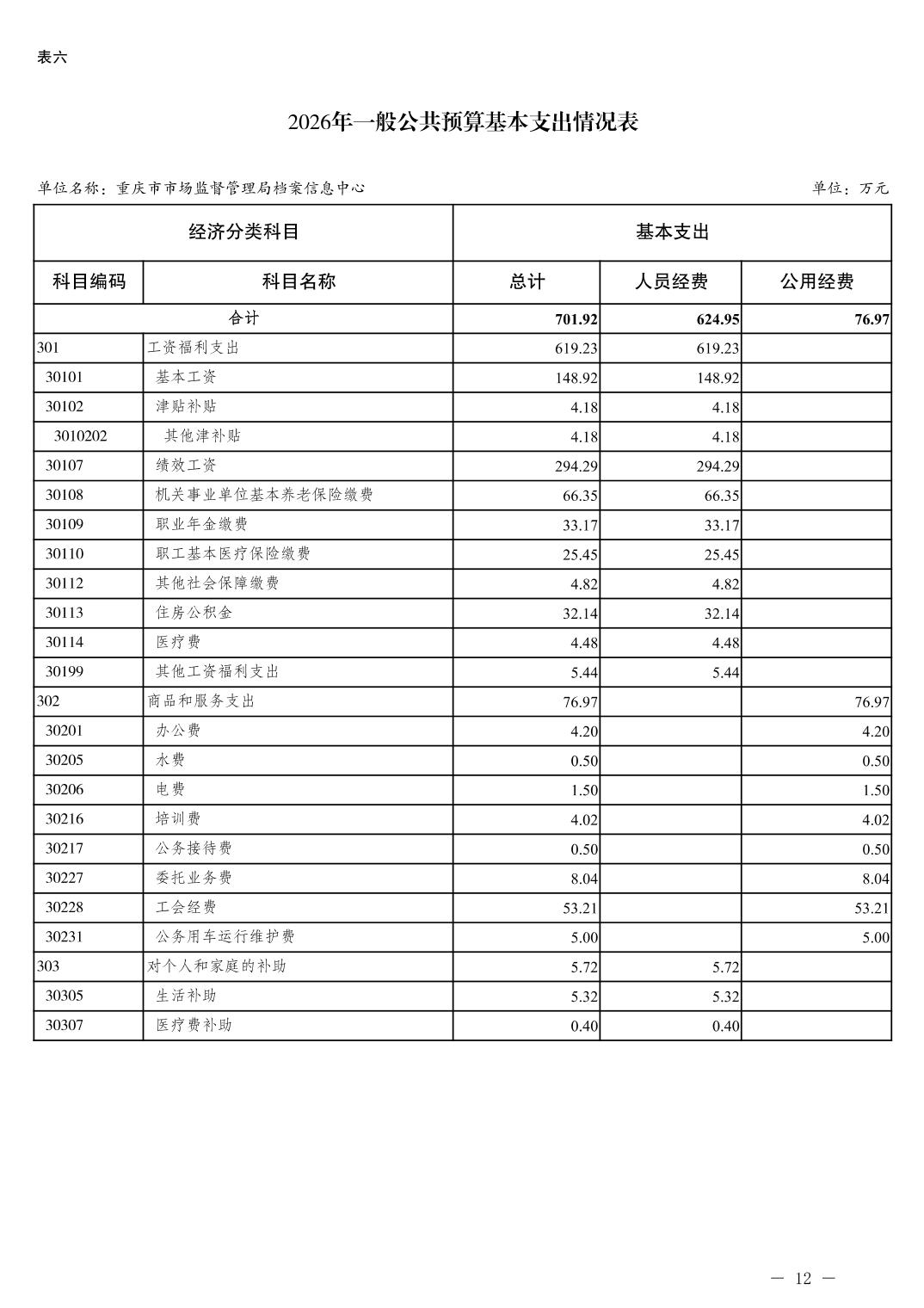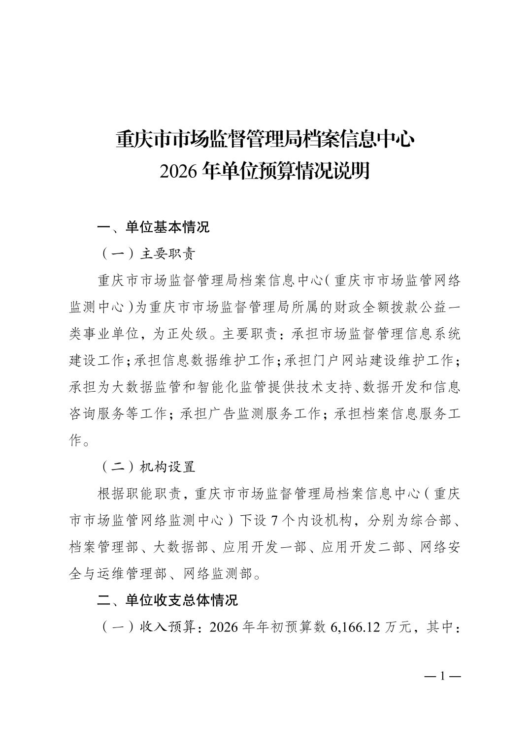重庆市市场监督管理局档案信息中心2026年单位预算情况说明及附表