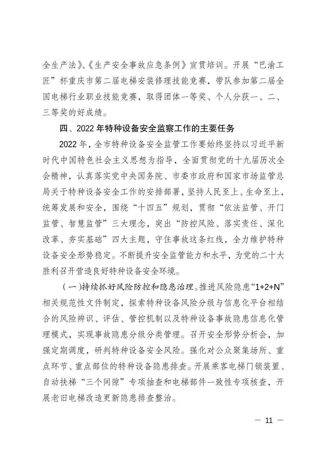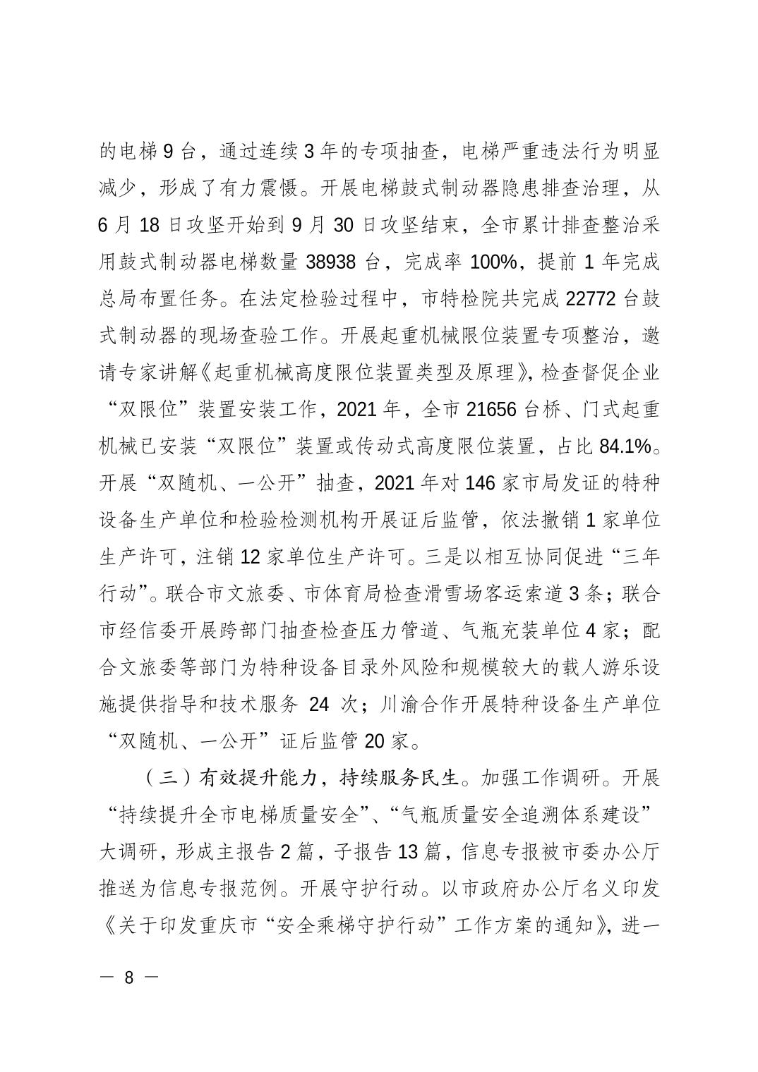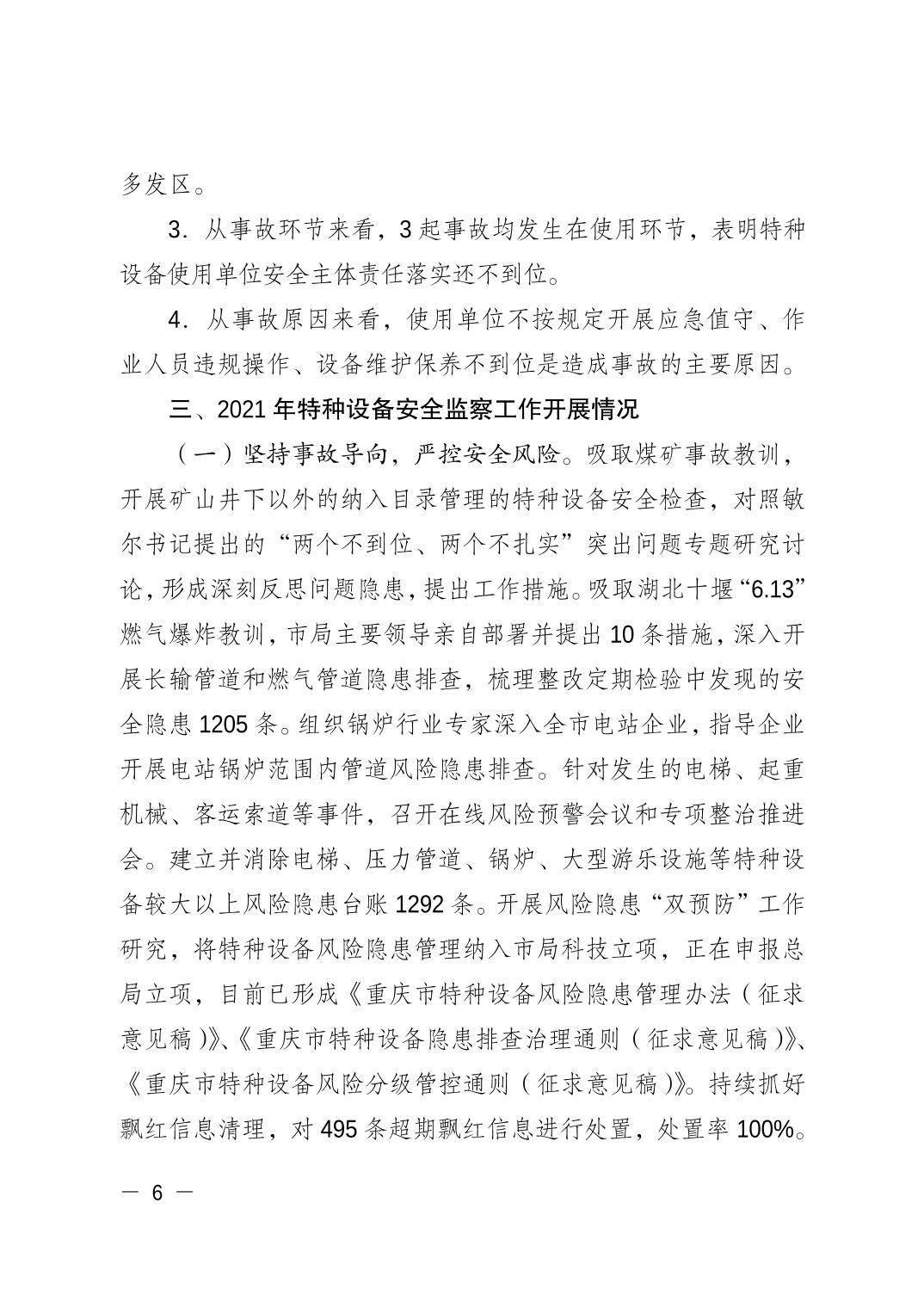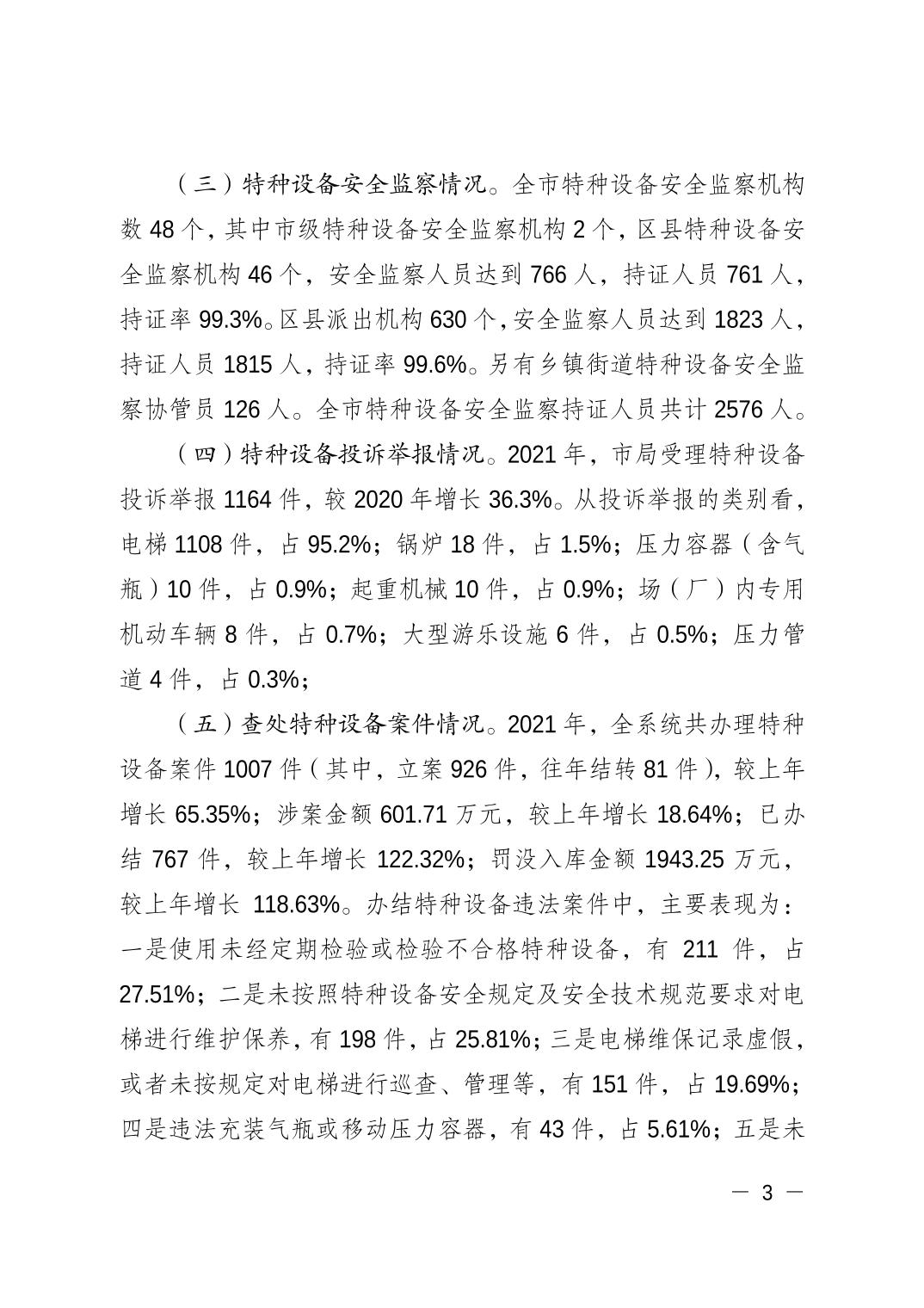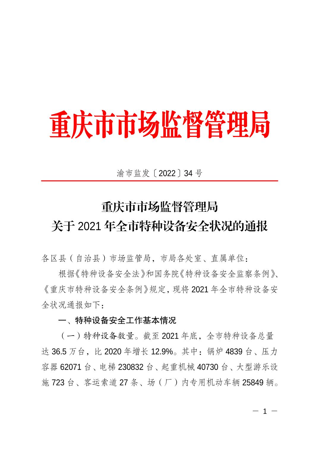 重庆市市场监督管理局关于2021年全市特种设备安全状况的通报