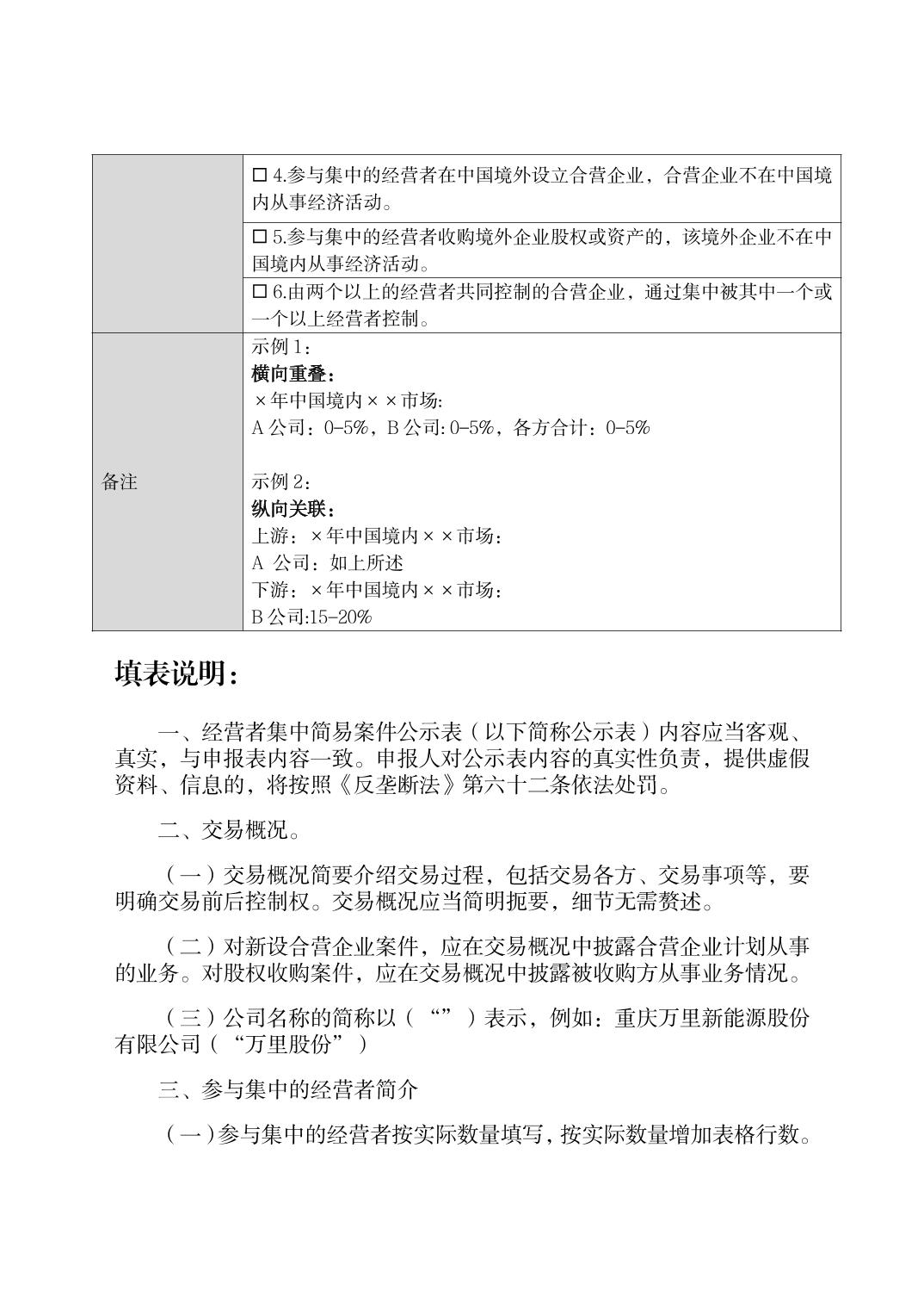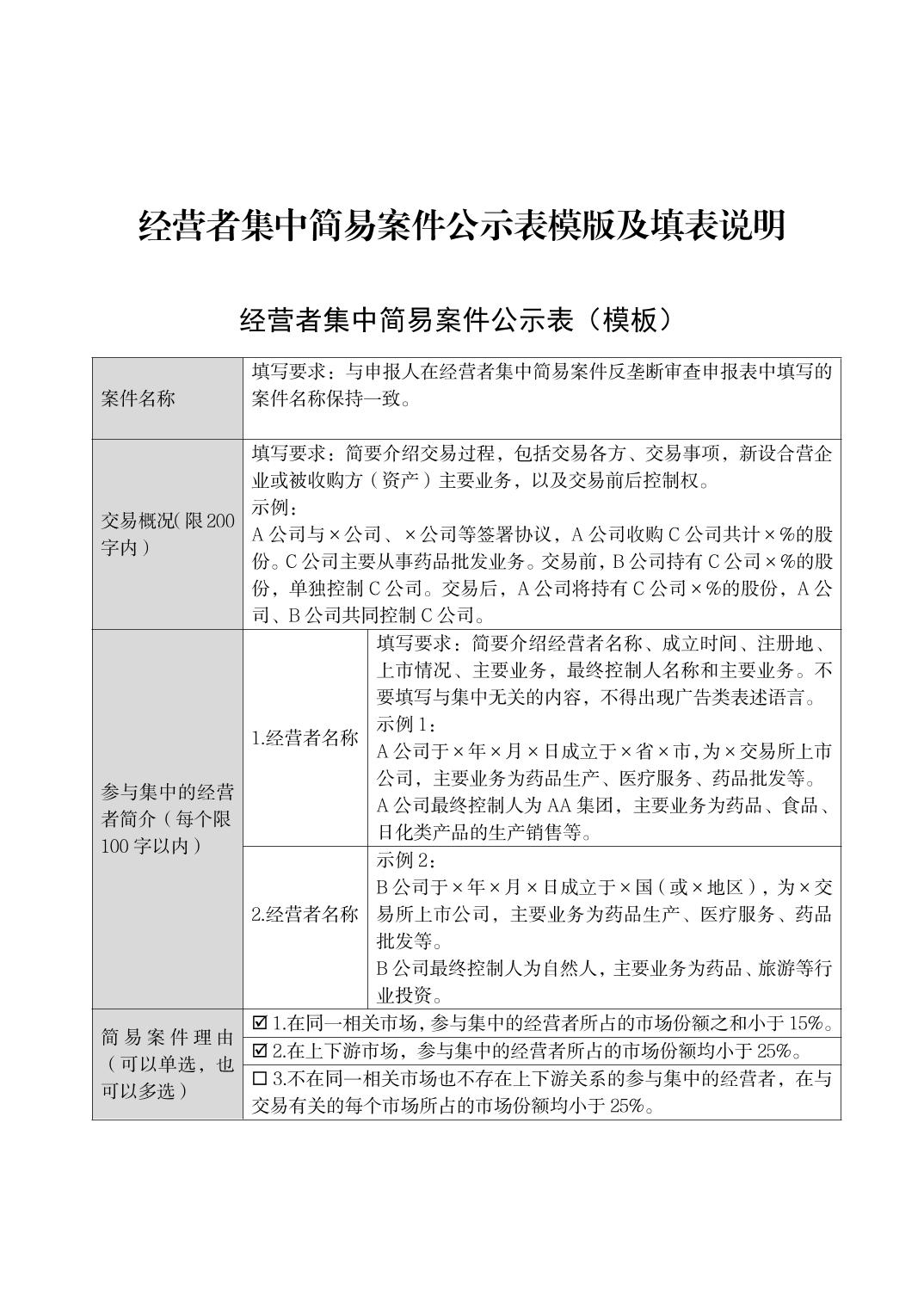 经营者集中简易案件公示表