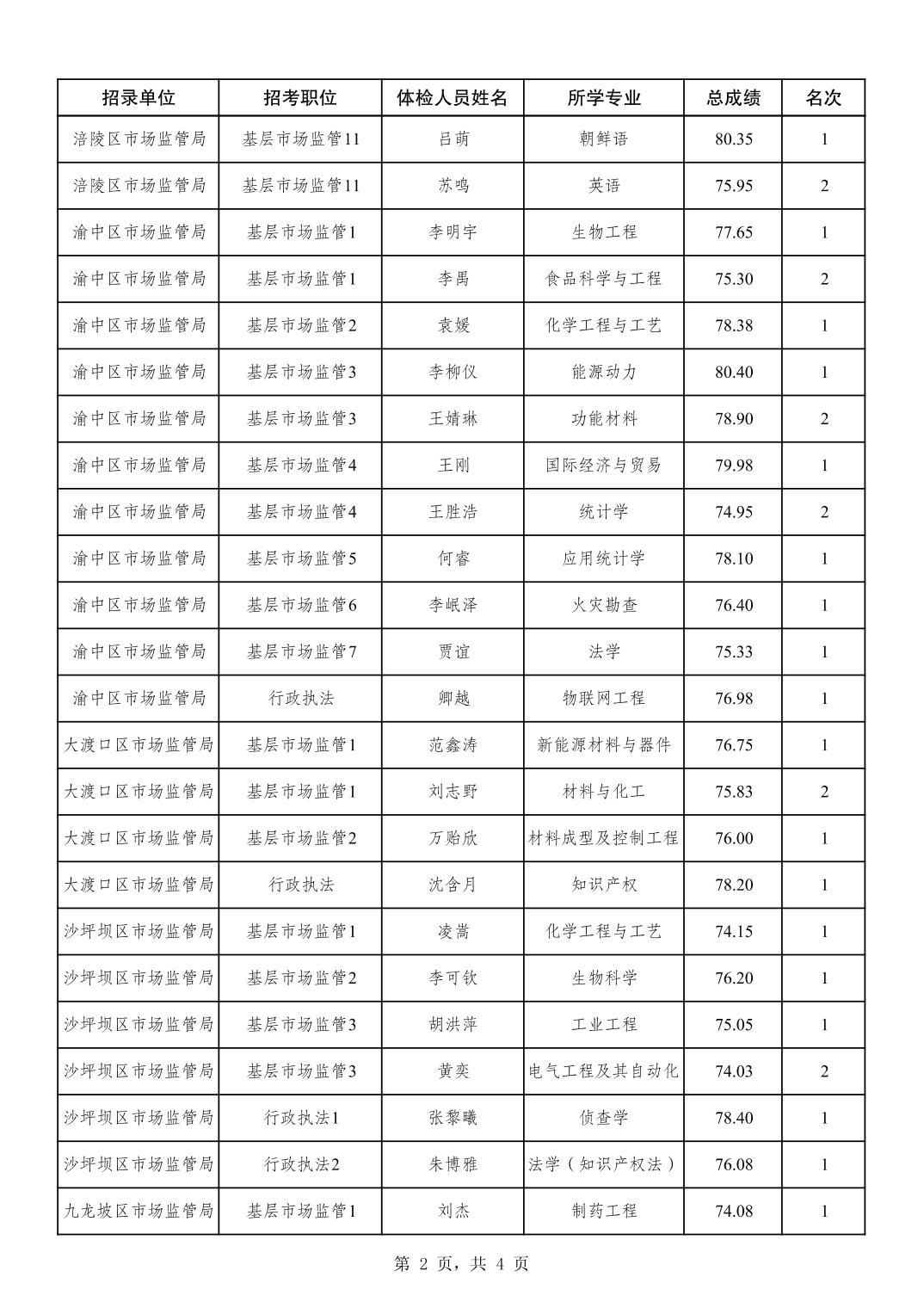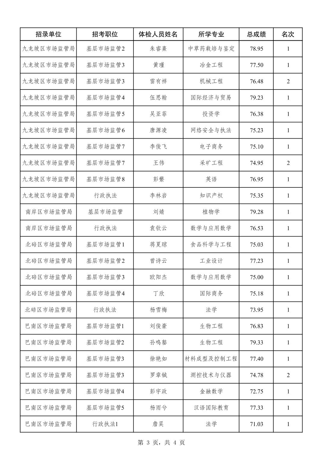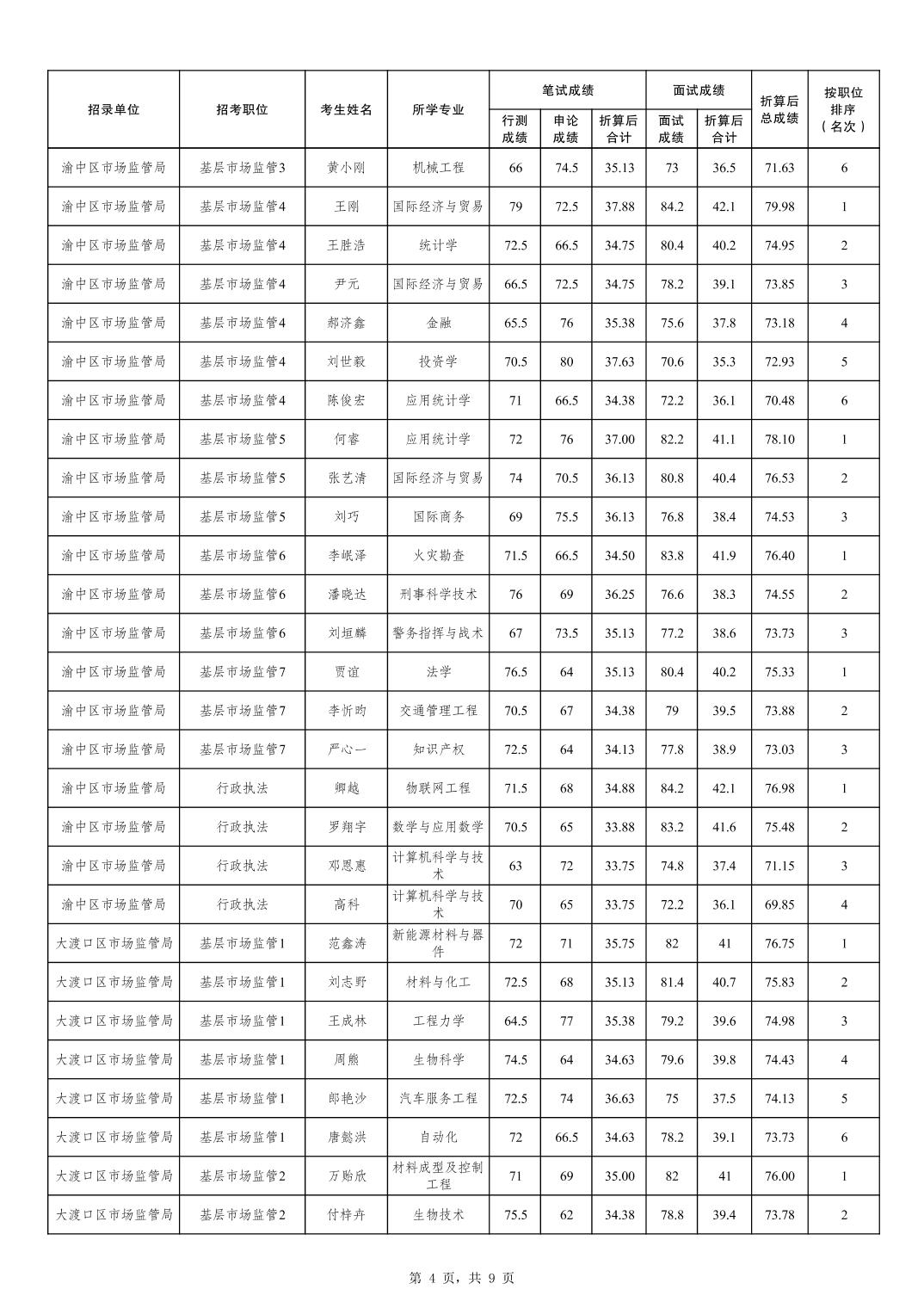 重庆市市场监督管理局2026年考试录用公务员成绩及参加体检人员公布(4月25日面试)