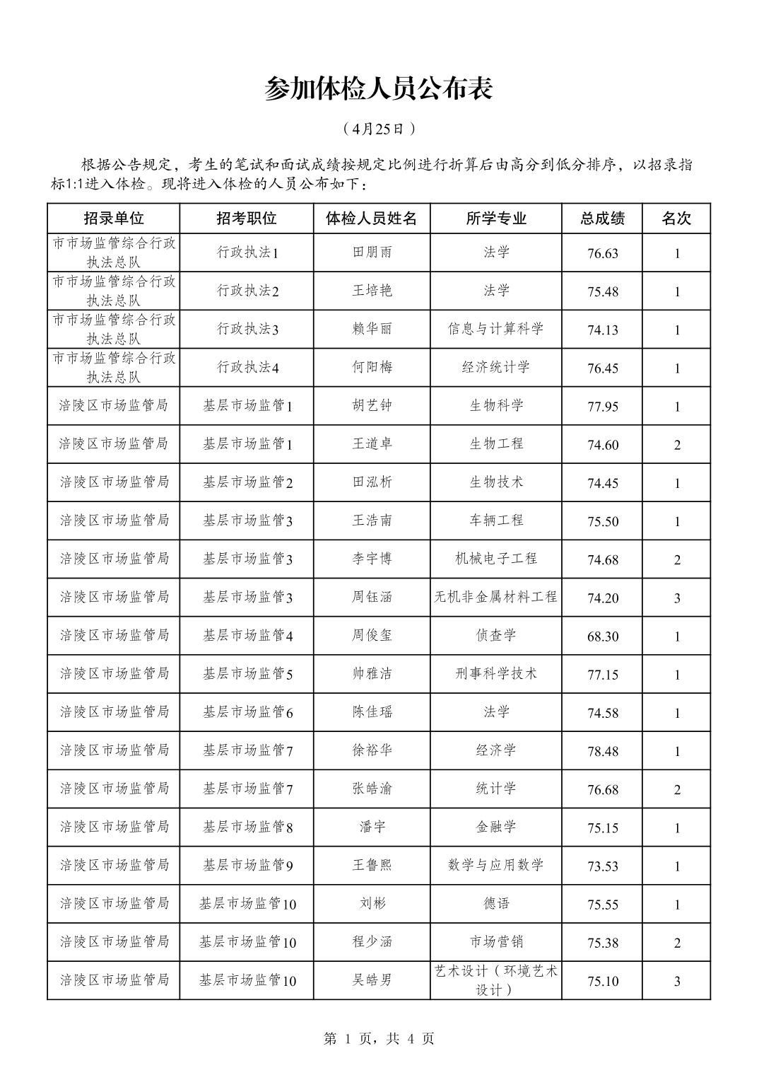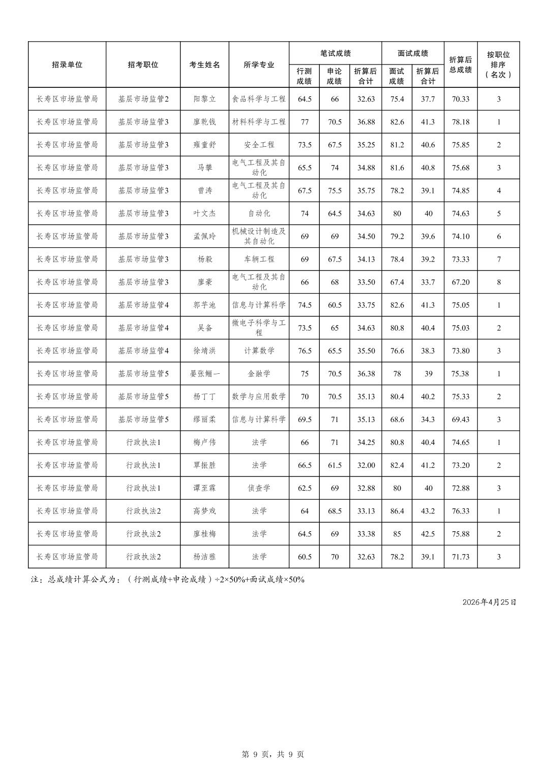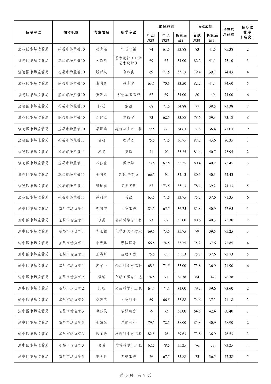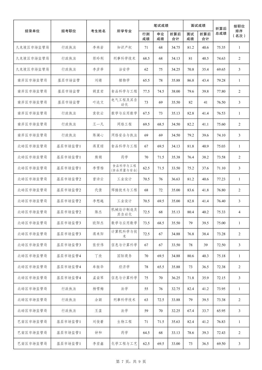重庆市市场监督管理局2026年考试录用公务员成绩及参加体检人员公布(4月25日面试)