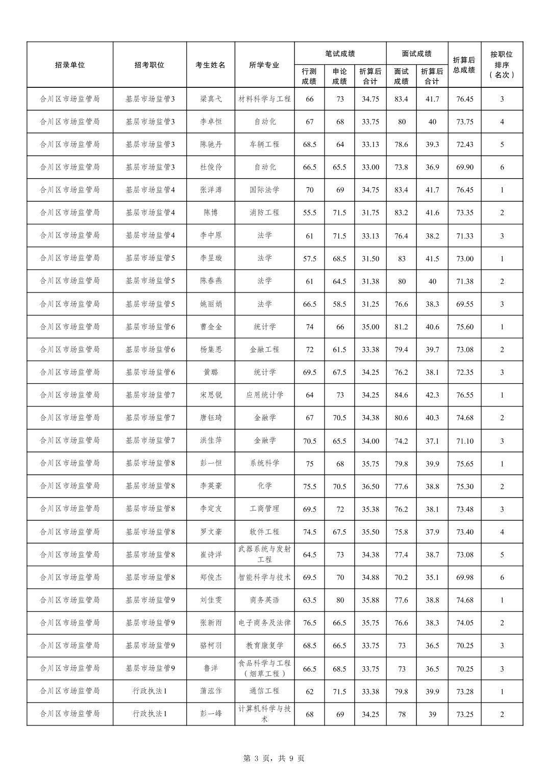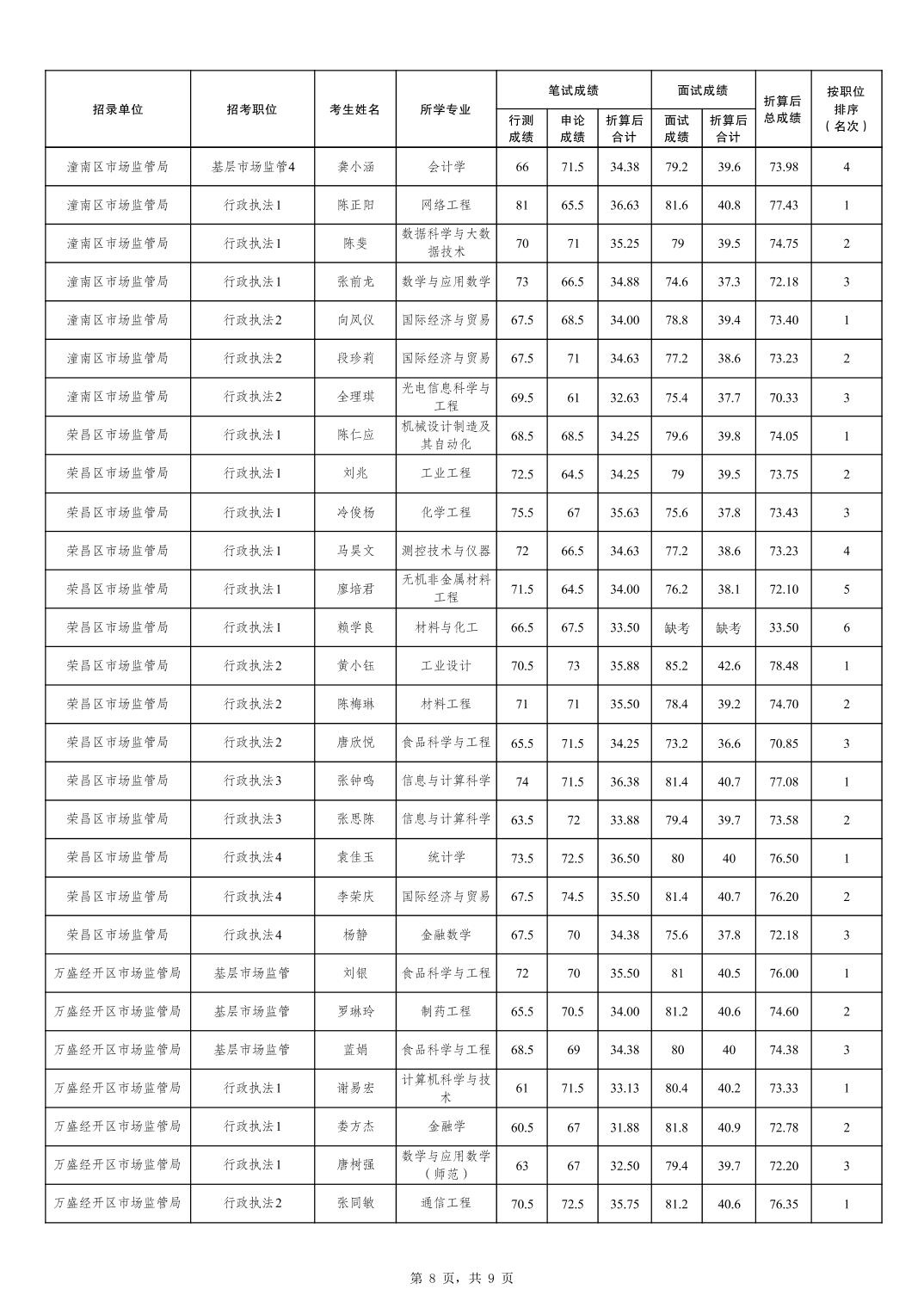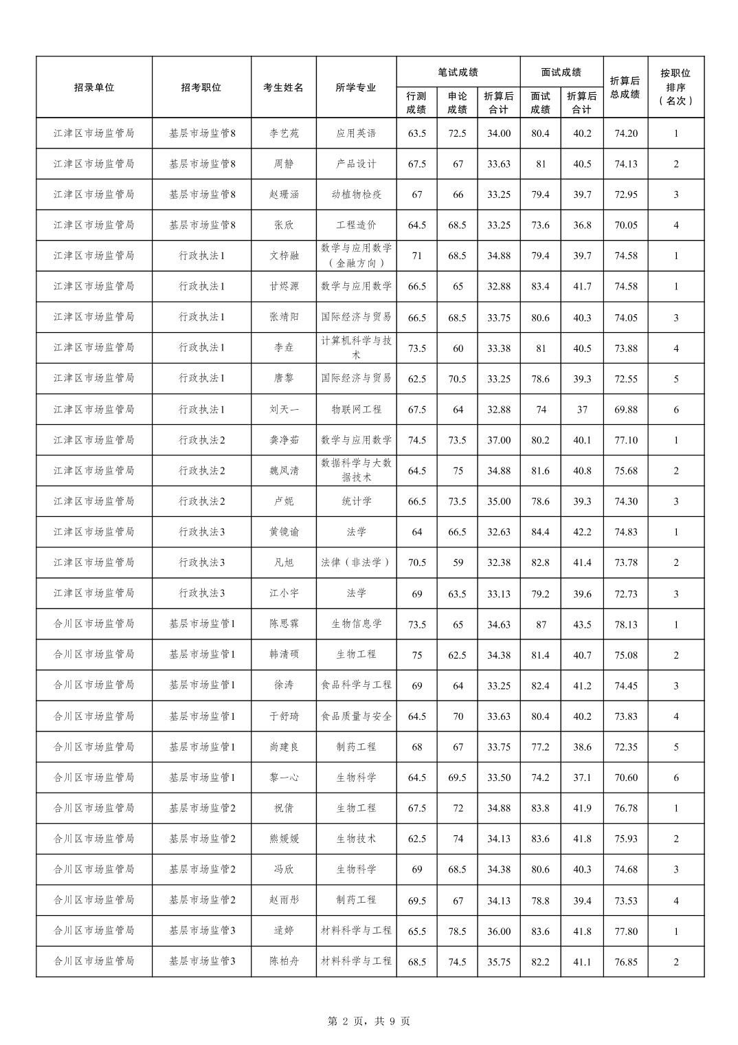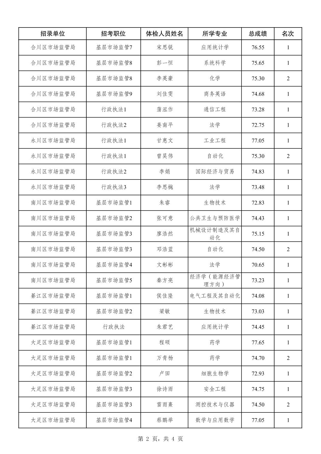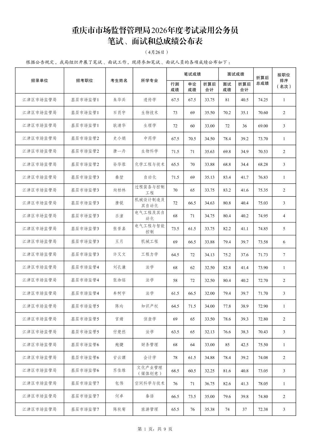 重庆市市场监督管理局2026年考试录用公务员成绩及参加体检人员公布(4月26日面试)