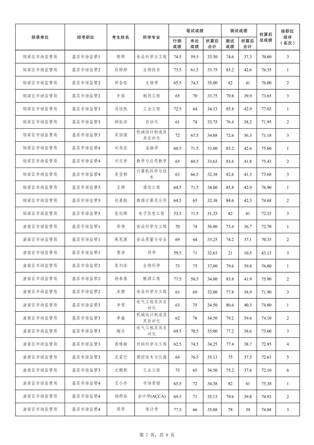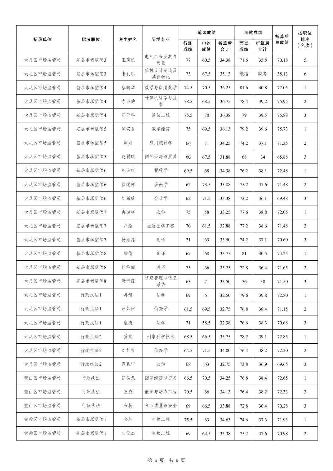 重庆市市场监督管理局2026年考试录用公务员成绩及参加体检人员公布(4月26日面试)