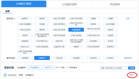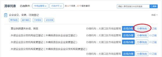 重庆市大渡口区市场监督管理局行政审批指南均已在渝快办上发布,查询方式如下。