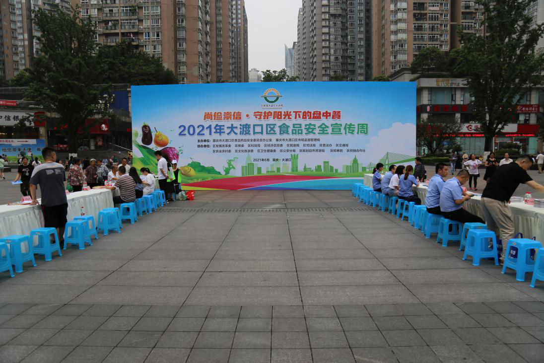 2021年6月24日,大渡口区食品安全宣传周集中宣传活动在九宫庙商圈步行街举行,此次活动深入贯彻以“尚俭崇信,守护阳光下的盘中餐”为主题主旨,由区食药安委主办,区市场监管局承办,区商务委、区公安分局、区卫健委等15个食药安委成员单位协办。大渡口区副区长、区食药安委副主任唐勇出席活动,他要求,各部门要以此次活动为契机,凝聚力量、整合资源,提高监管合力和效力,为公众营造放心、安全的食品消费环境。