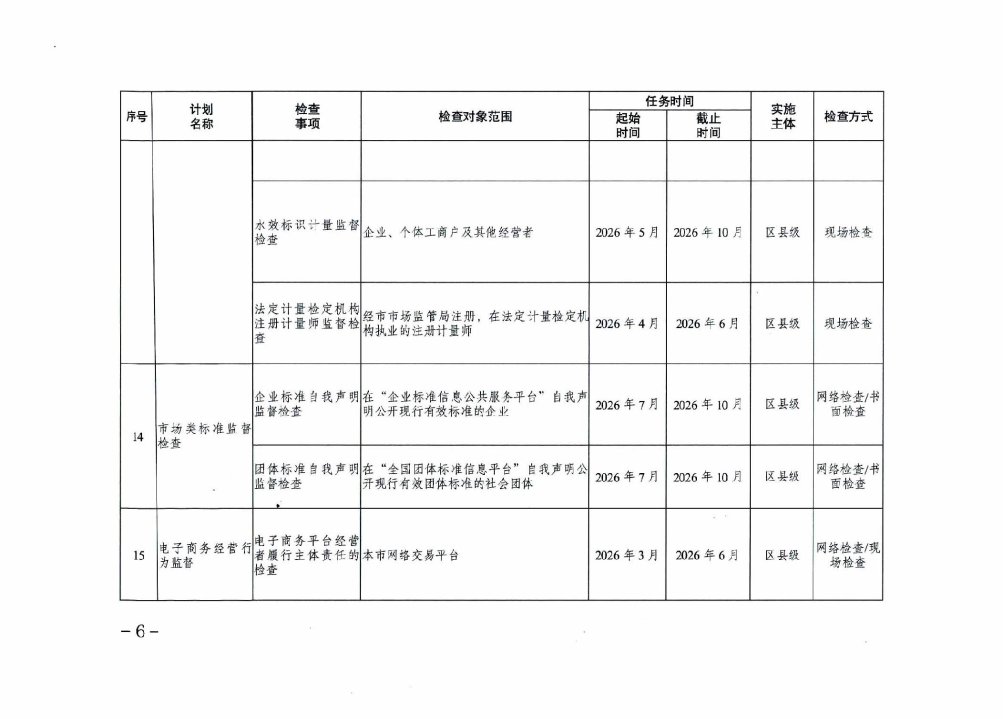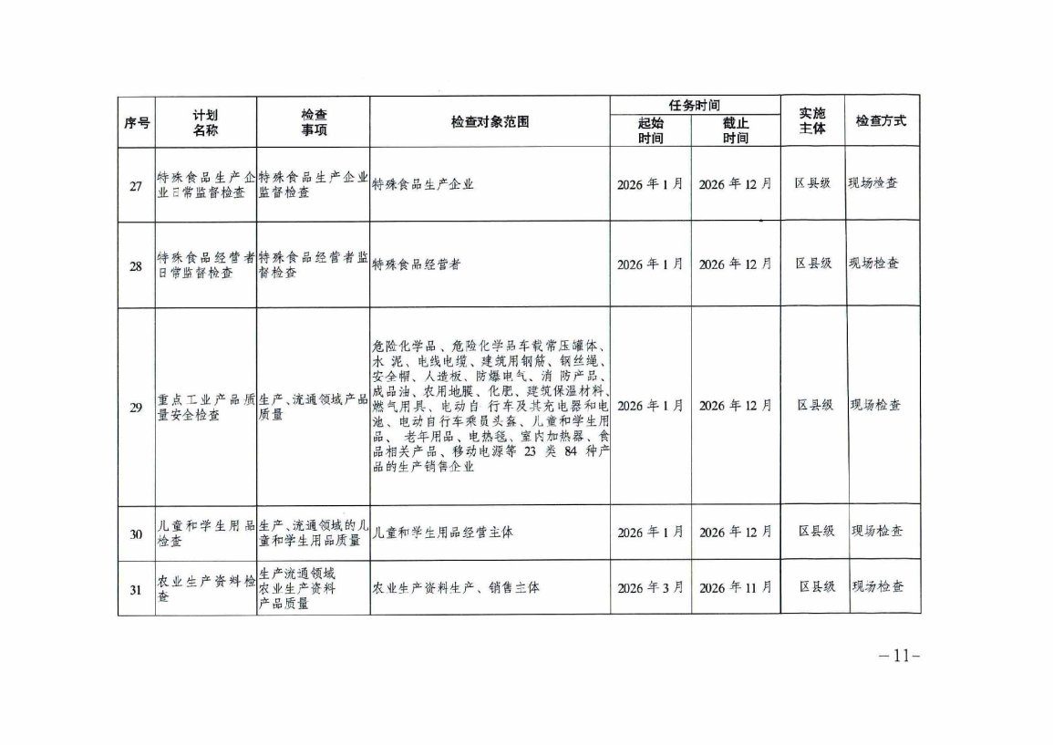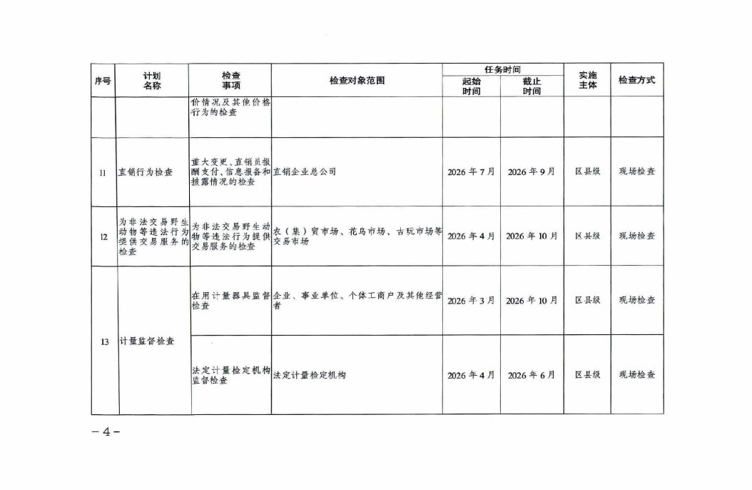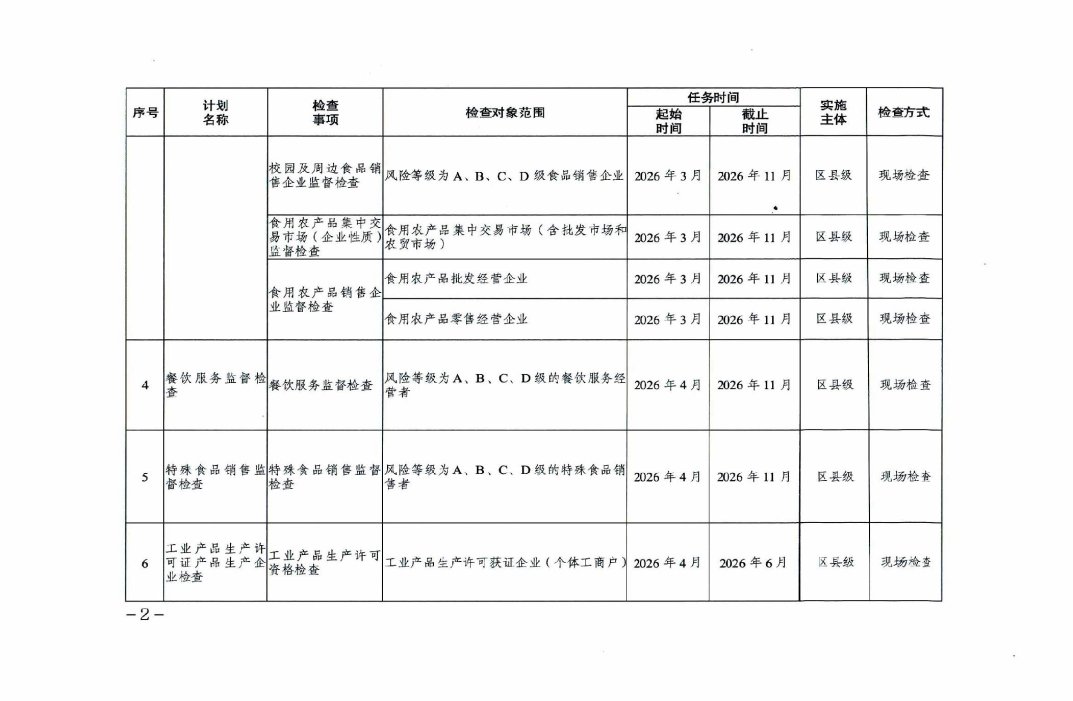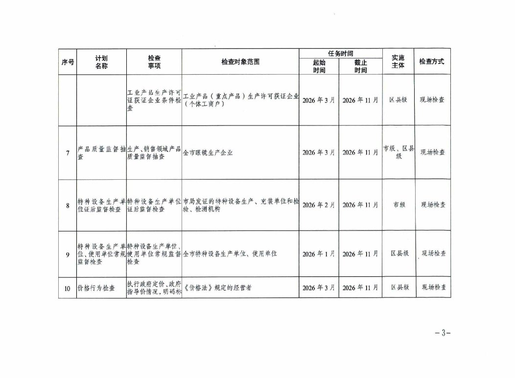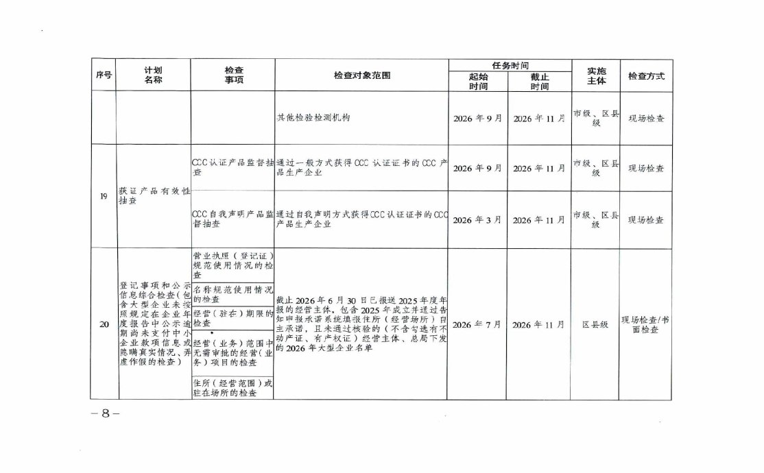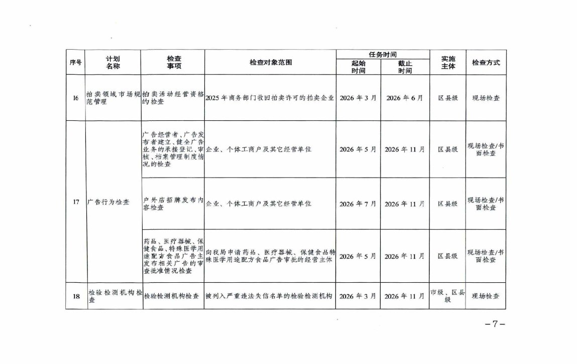重庆市市场监督管理局2026年度涉企行政检查日常检查计划