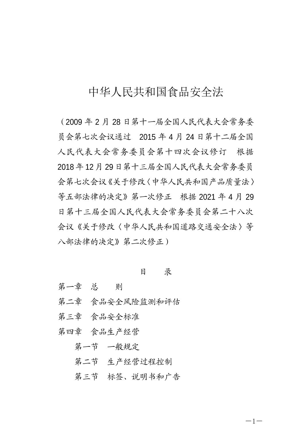 中华人民共和国食品安全法