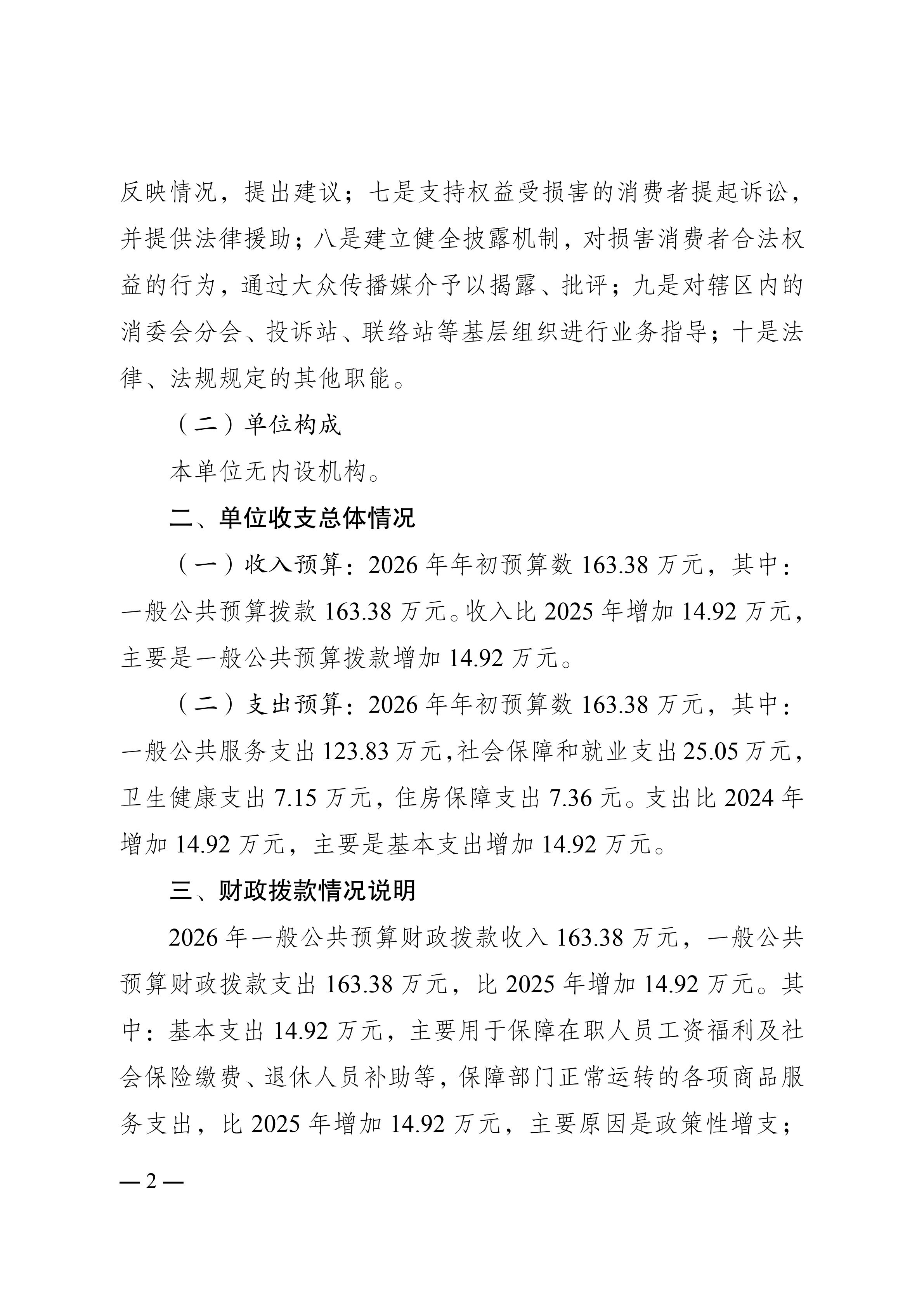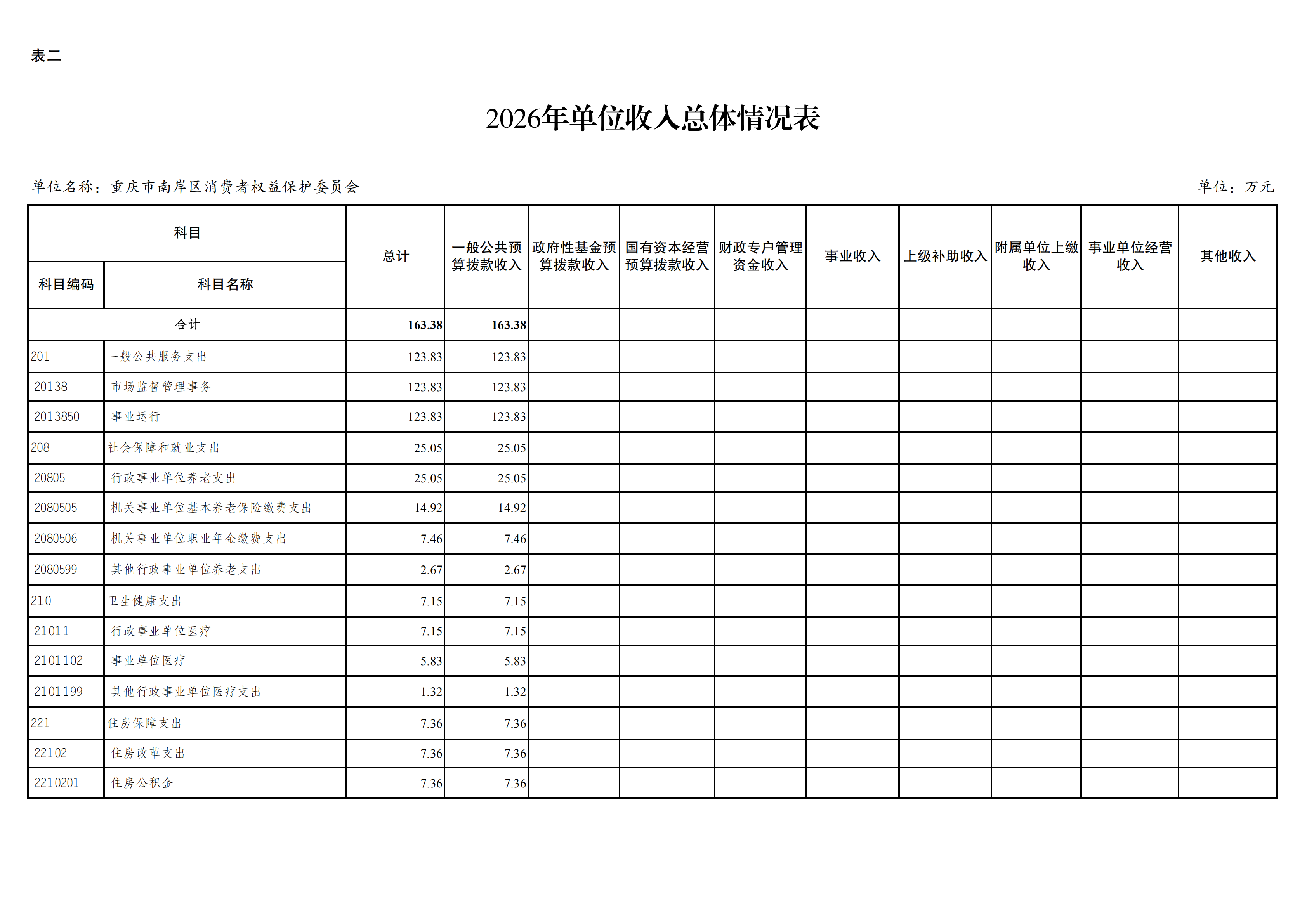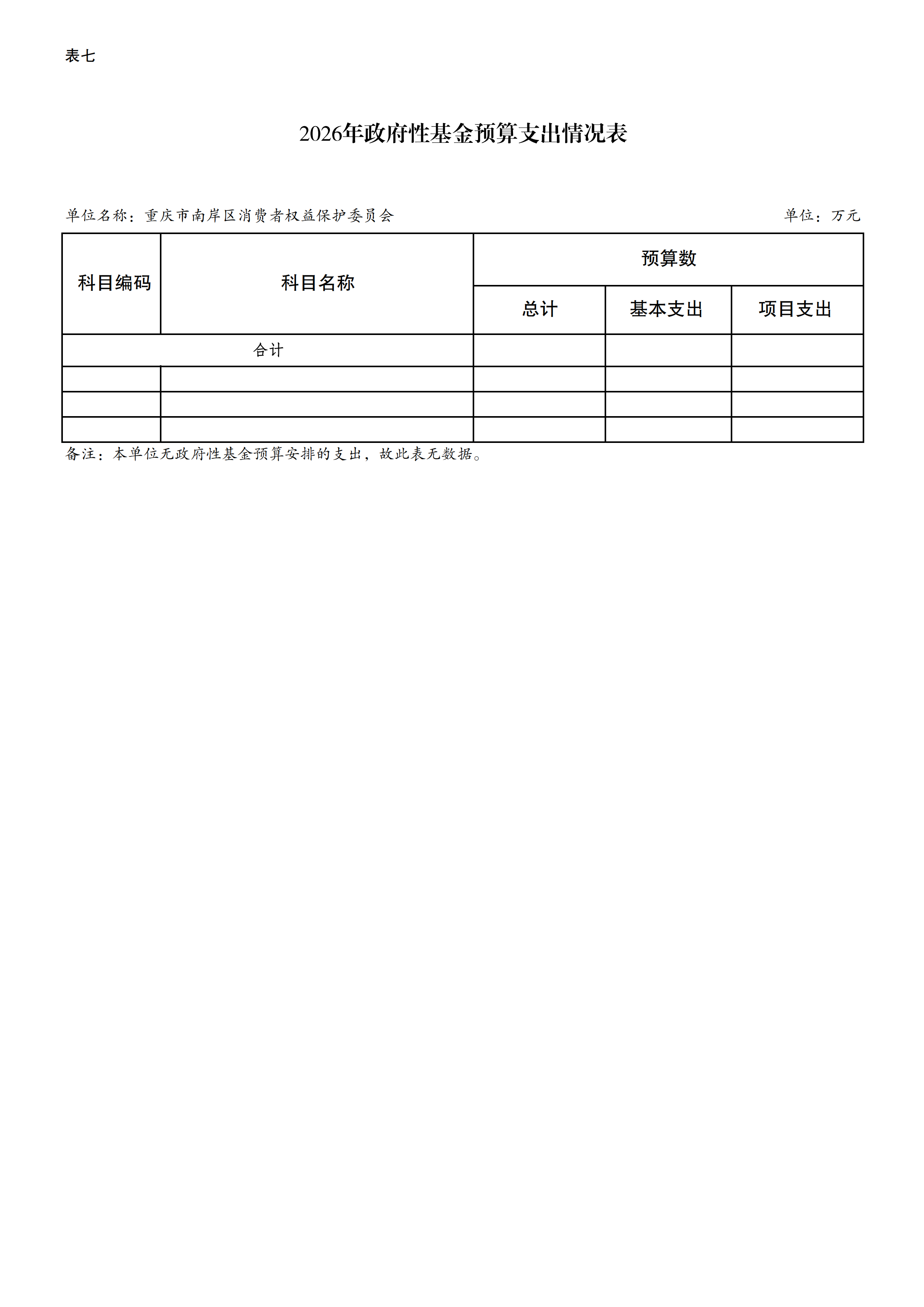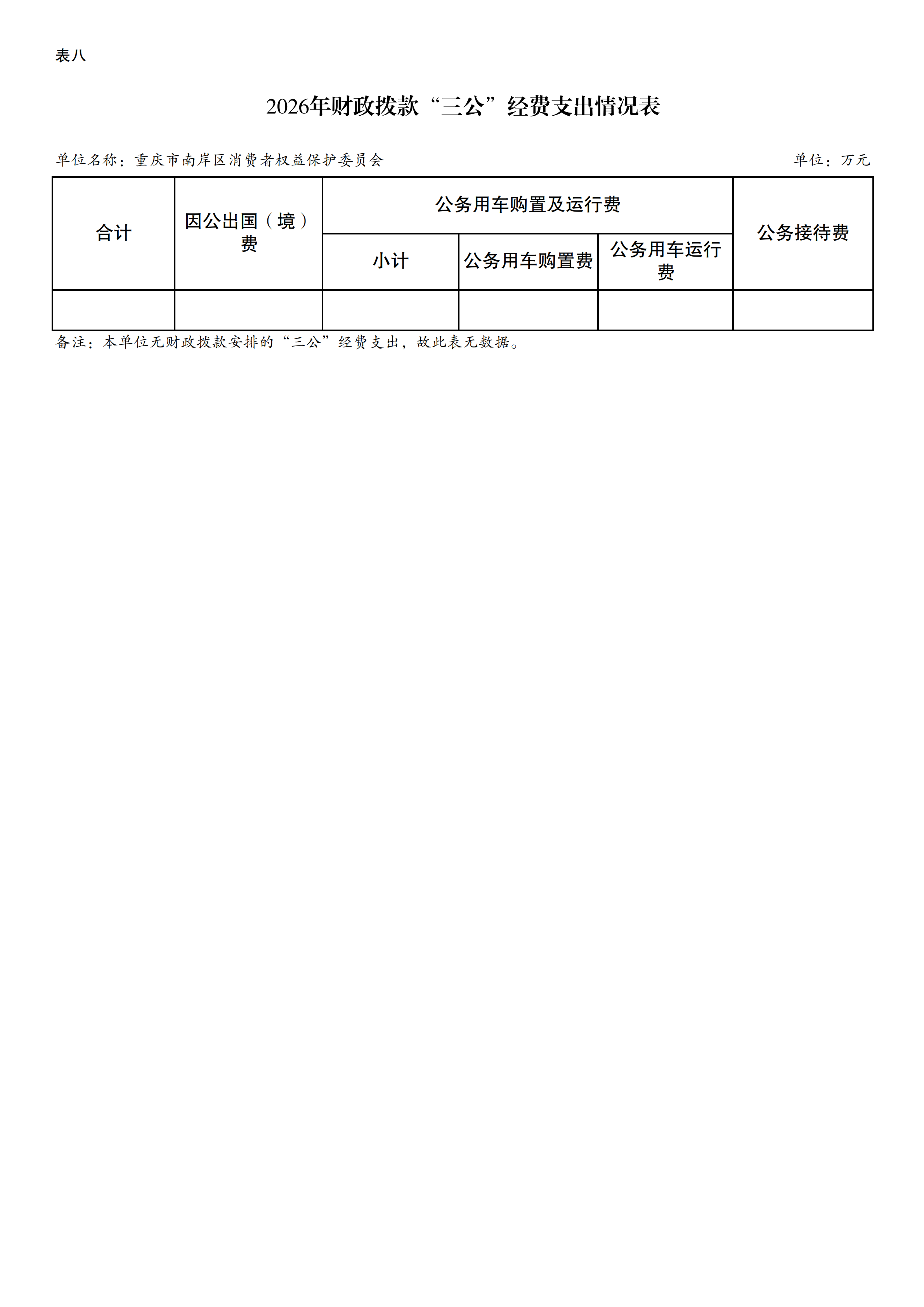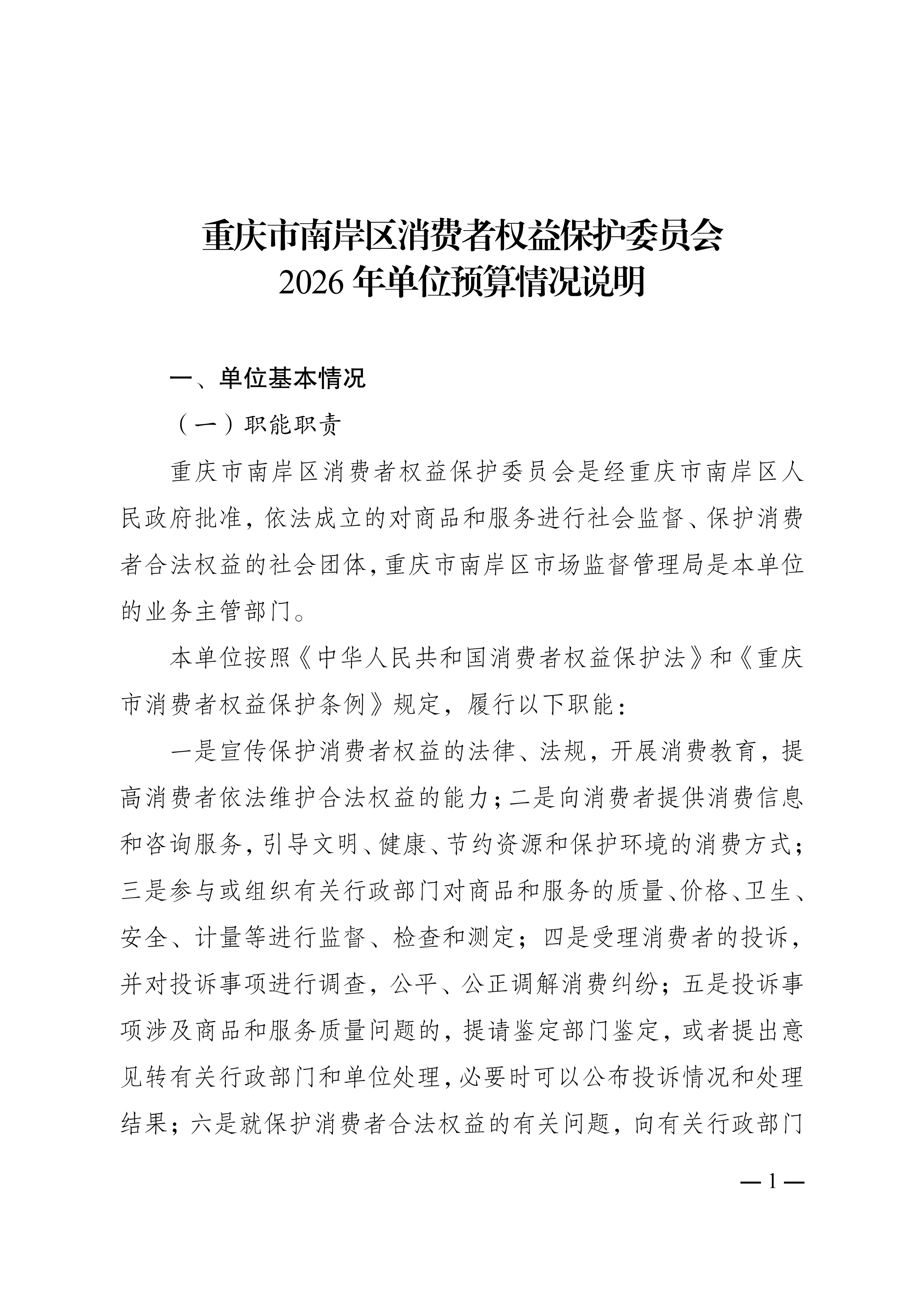 重庆市南岸区消费者权益保护委员会2026年单位预算情况说明