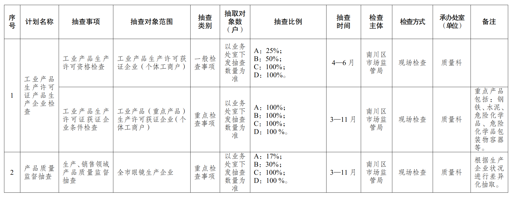 2026年度南川区市场监督管理局“双随机、一公开”抽查工作计划