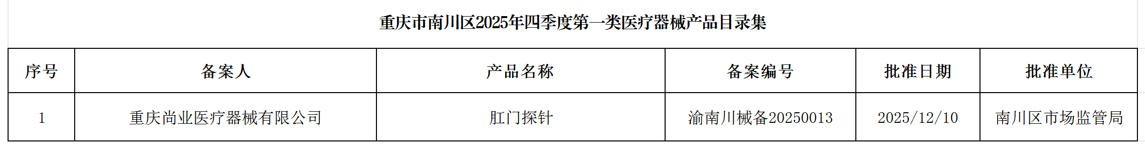 重庆市南川区2025年四季度第一类医疗器械产品目录集公告