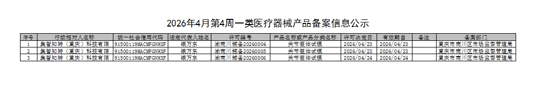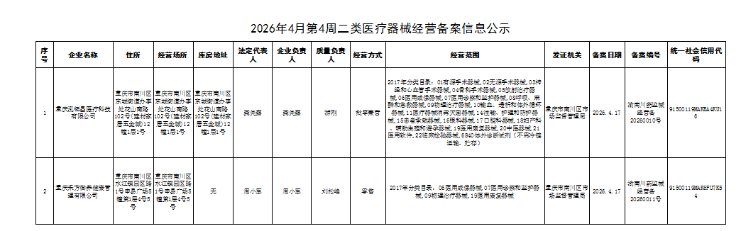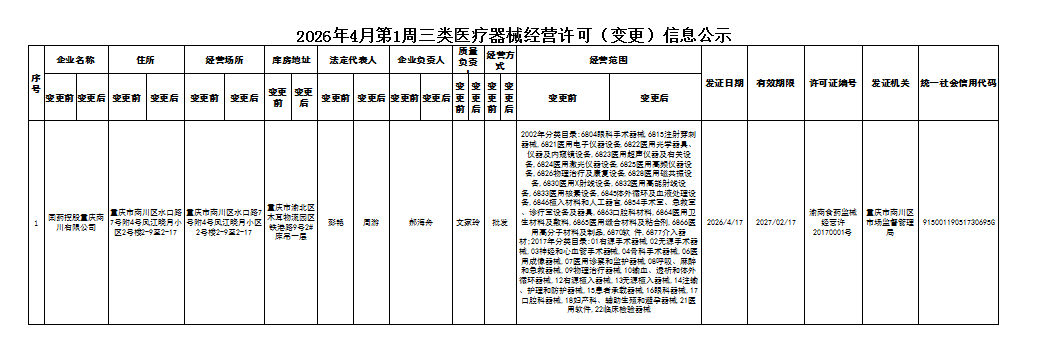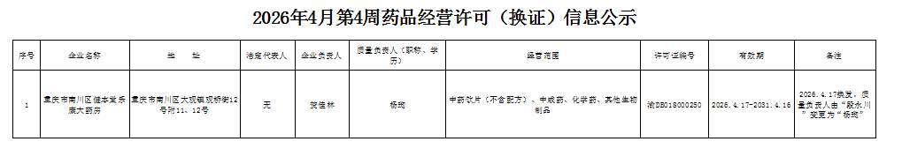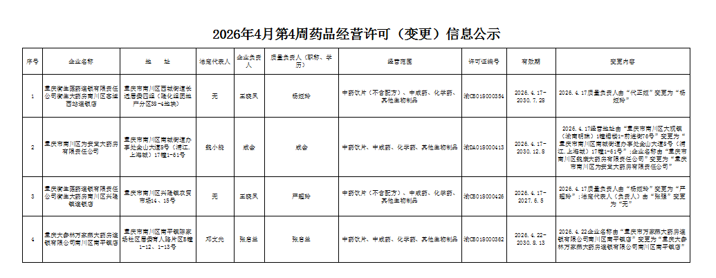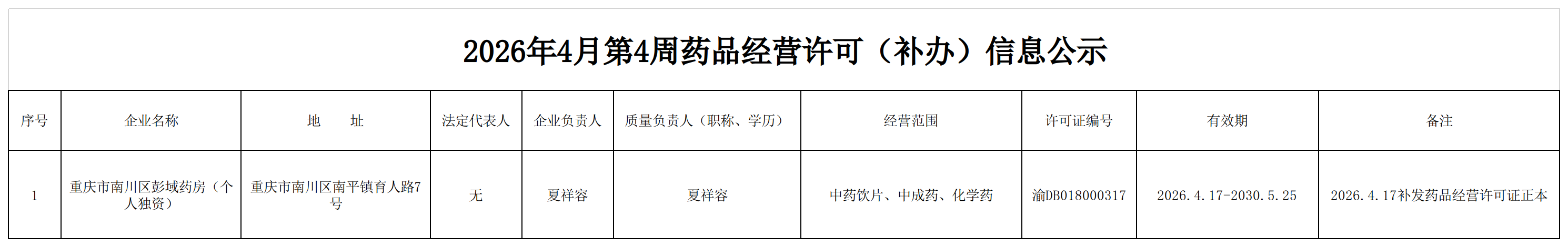 2026年4月第4周南川区市场监管局药品行政审批许可信息