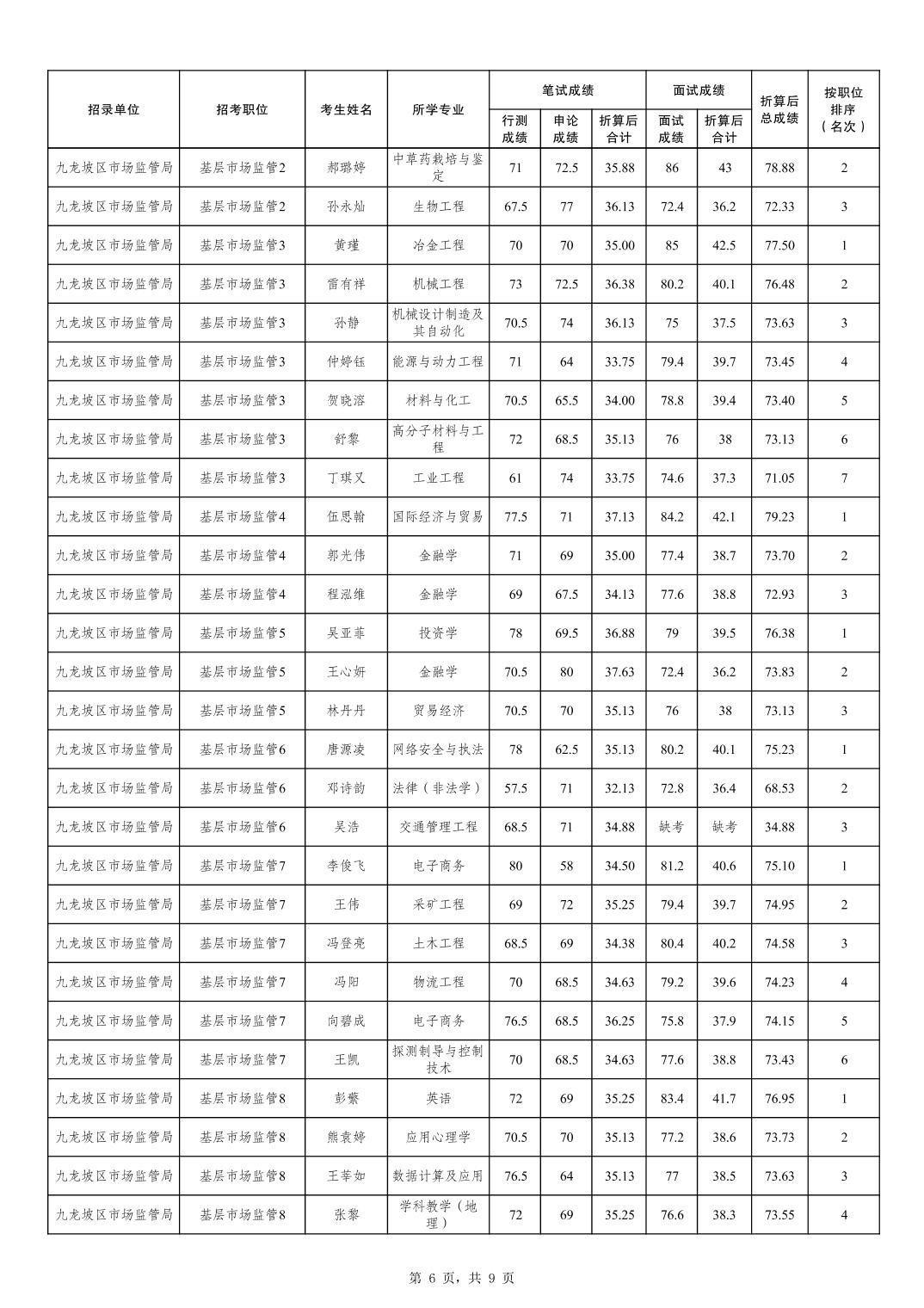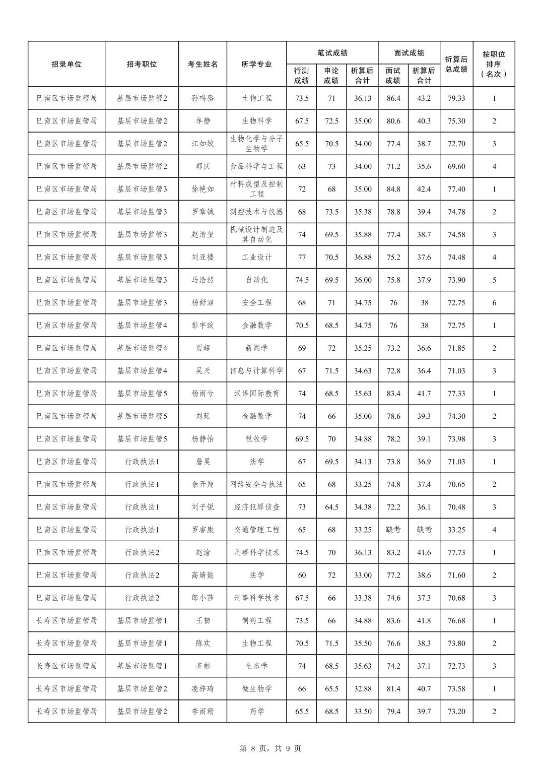 重庆市市场监督管理局2026年考试录用公务员成绩及参加体检人员公布(4月25日面试)