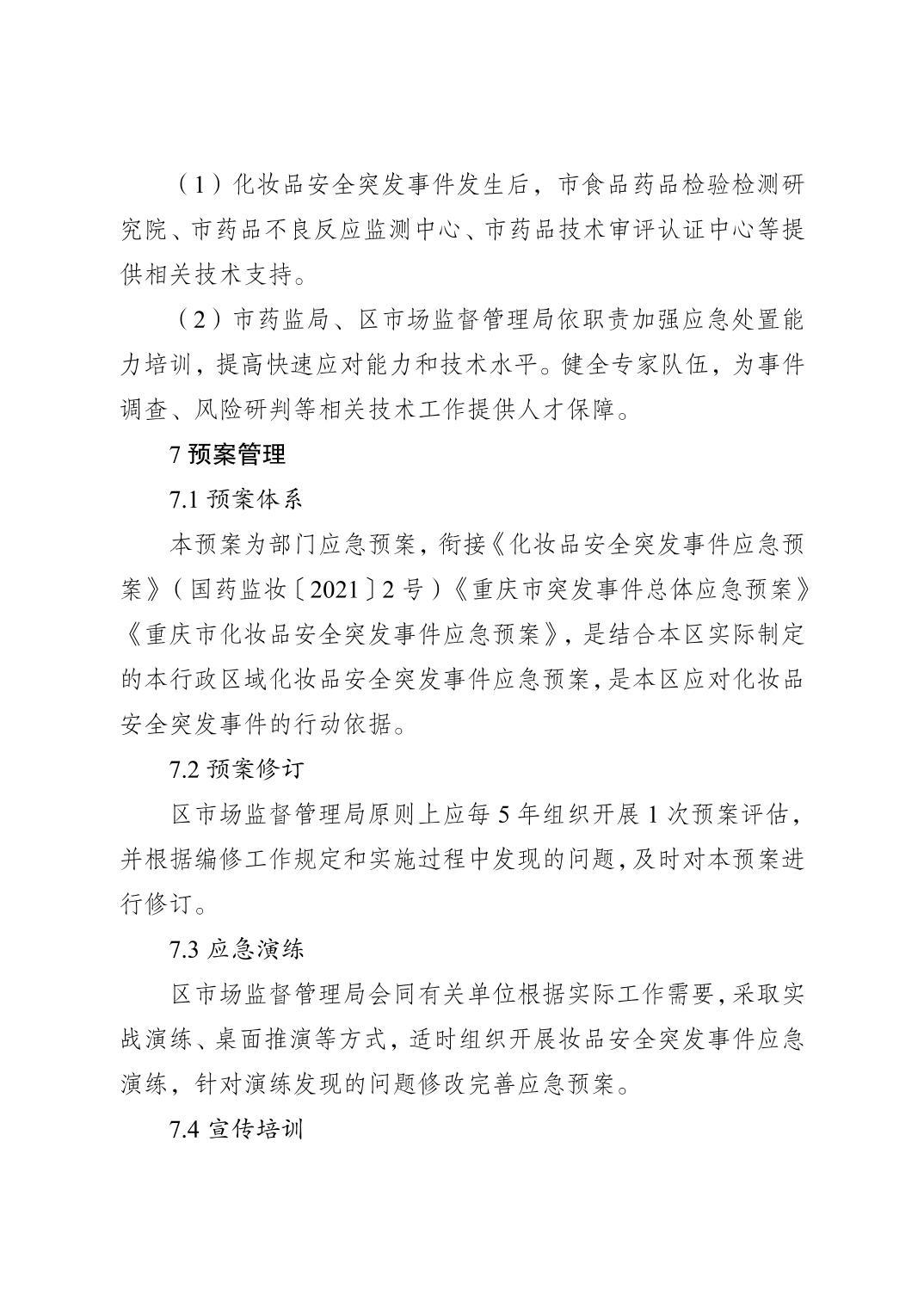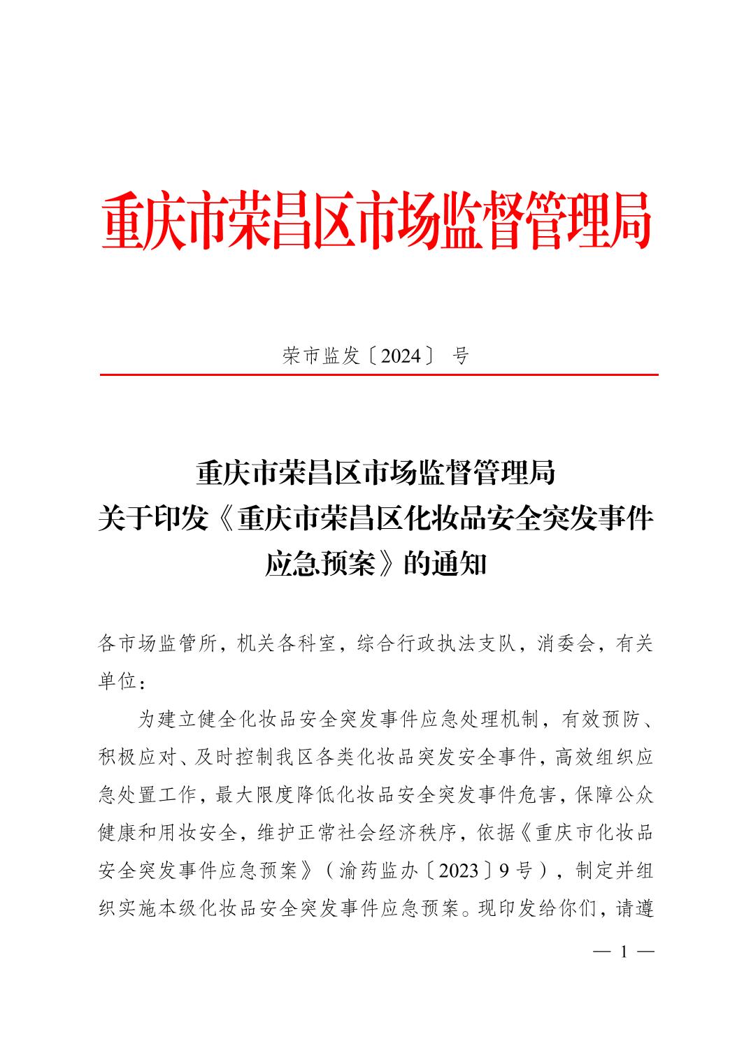 重庆市荣昌区市场监督管理局关于印发《重庆市荣昌区化妆品安全突发事件应急预案》的通知