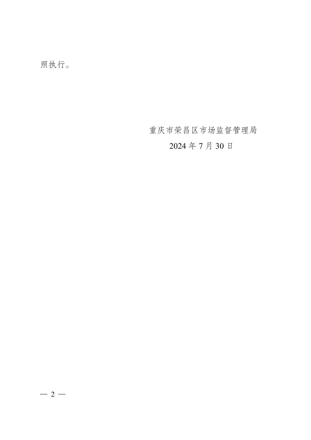 | [ 发布机构 ] | 重庆市荣昌区市场监督管理局 | ||