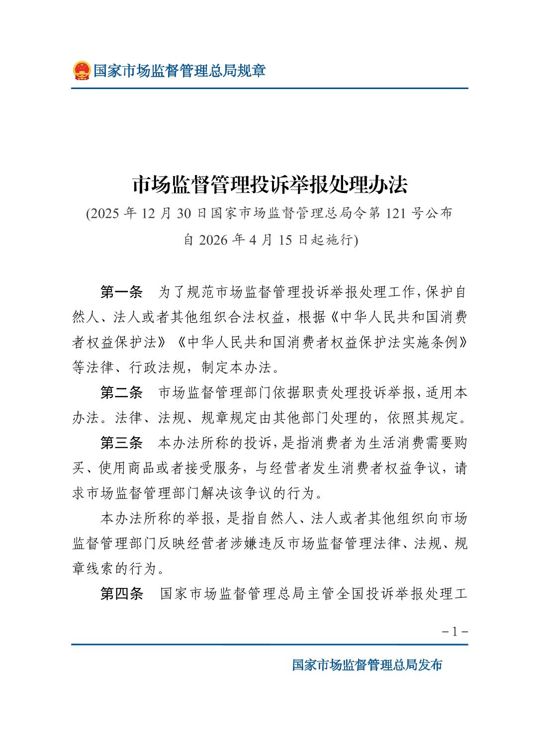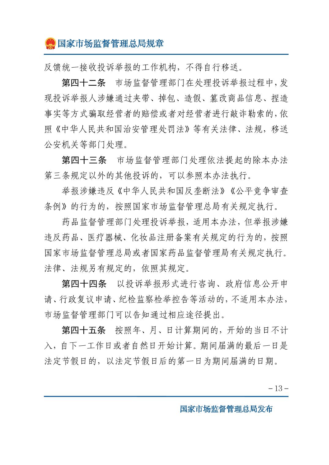 市场监督管理投诉举报处理办法