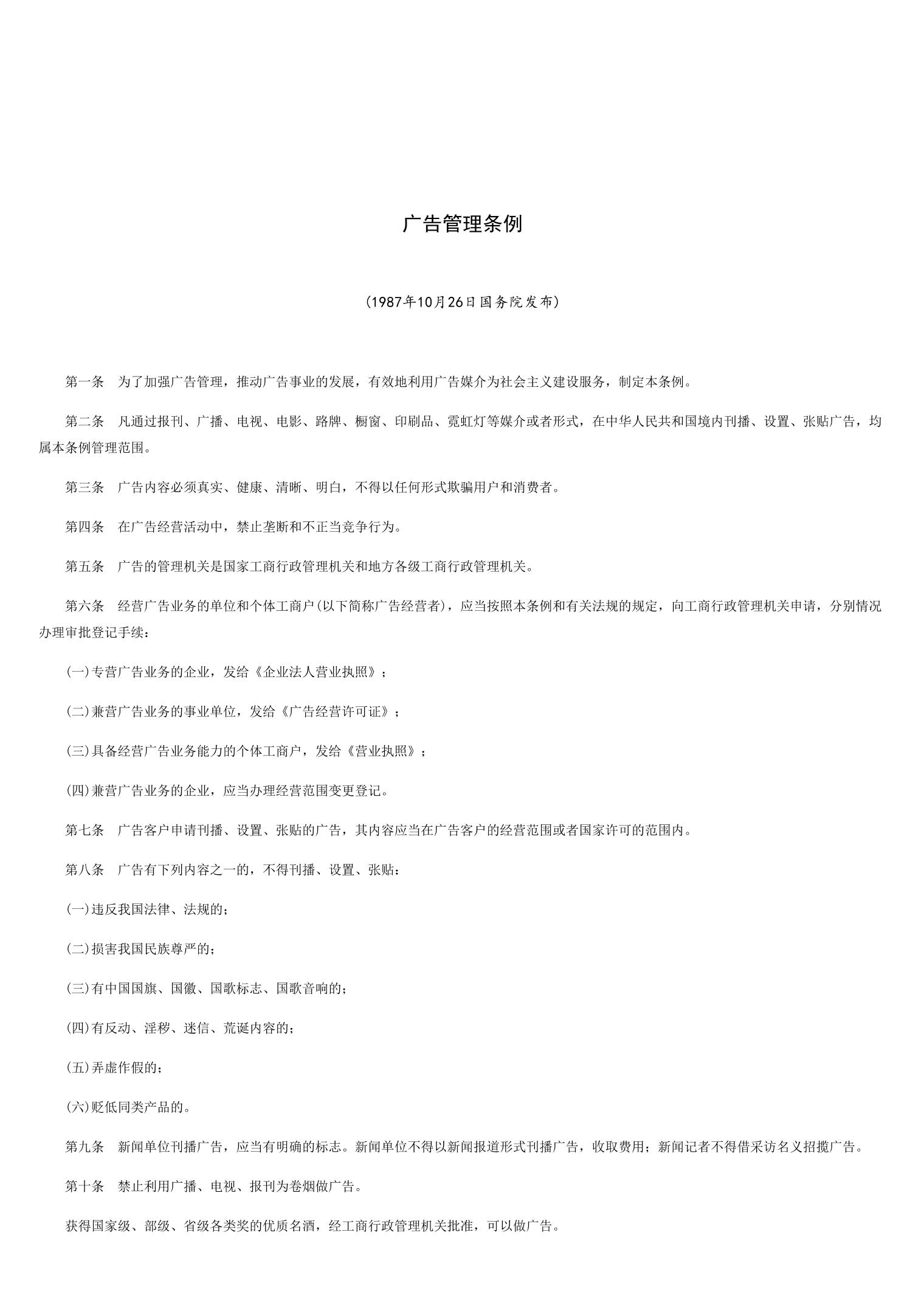 | [ 成文日期 ] | 1987-10-26 | [ 发布日期 ] | 2020-12-27 |