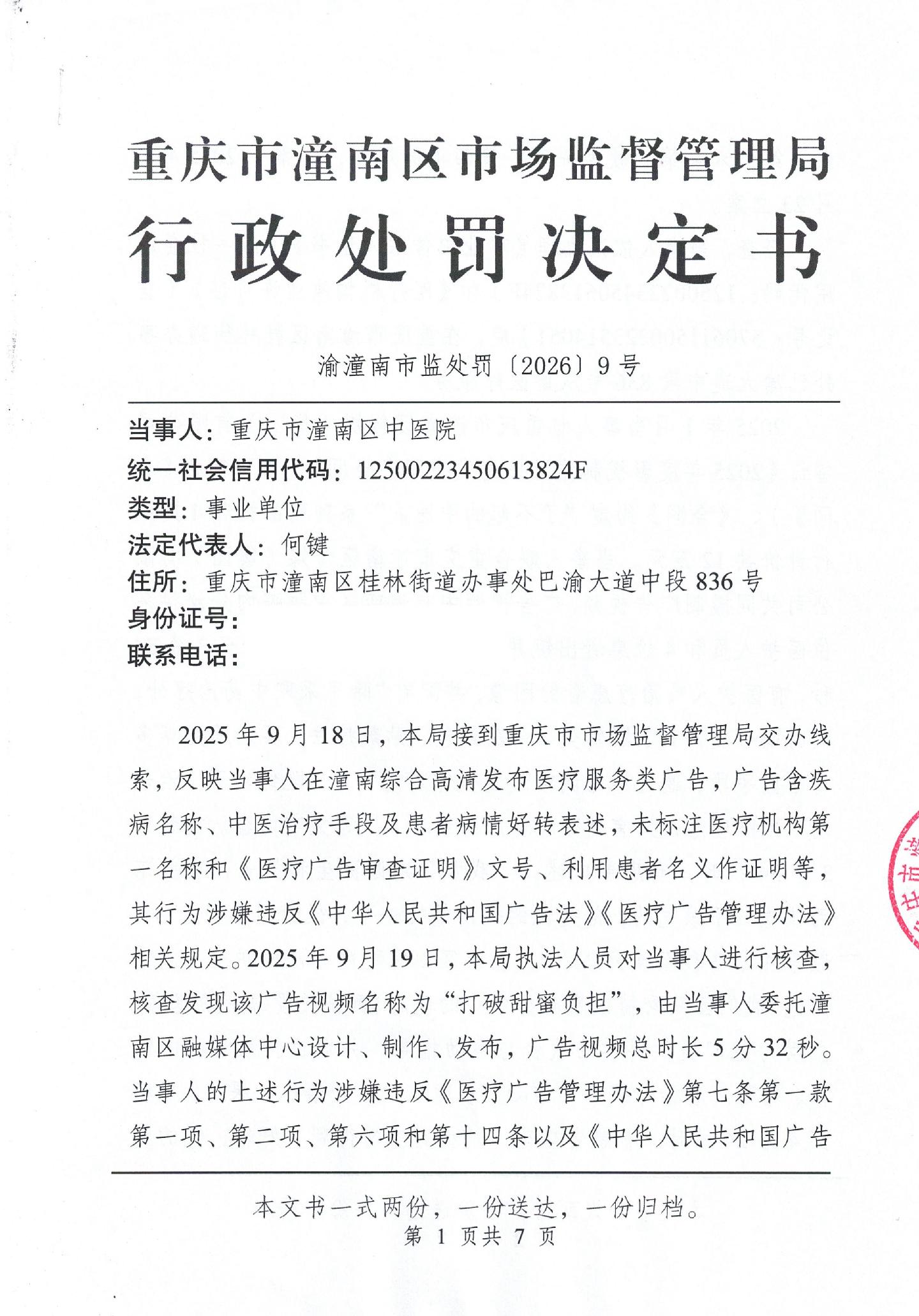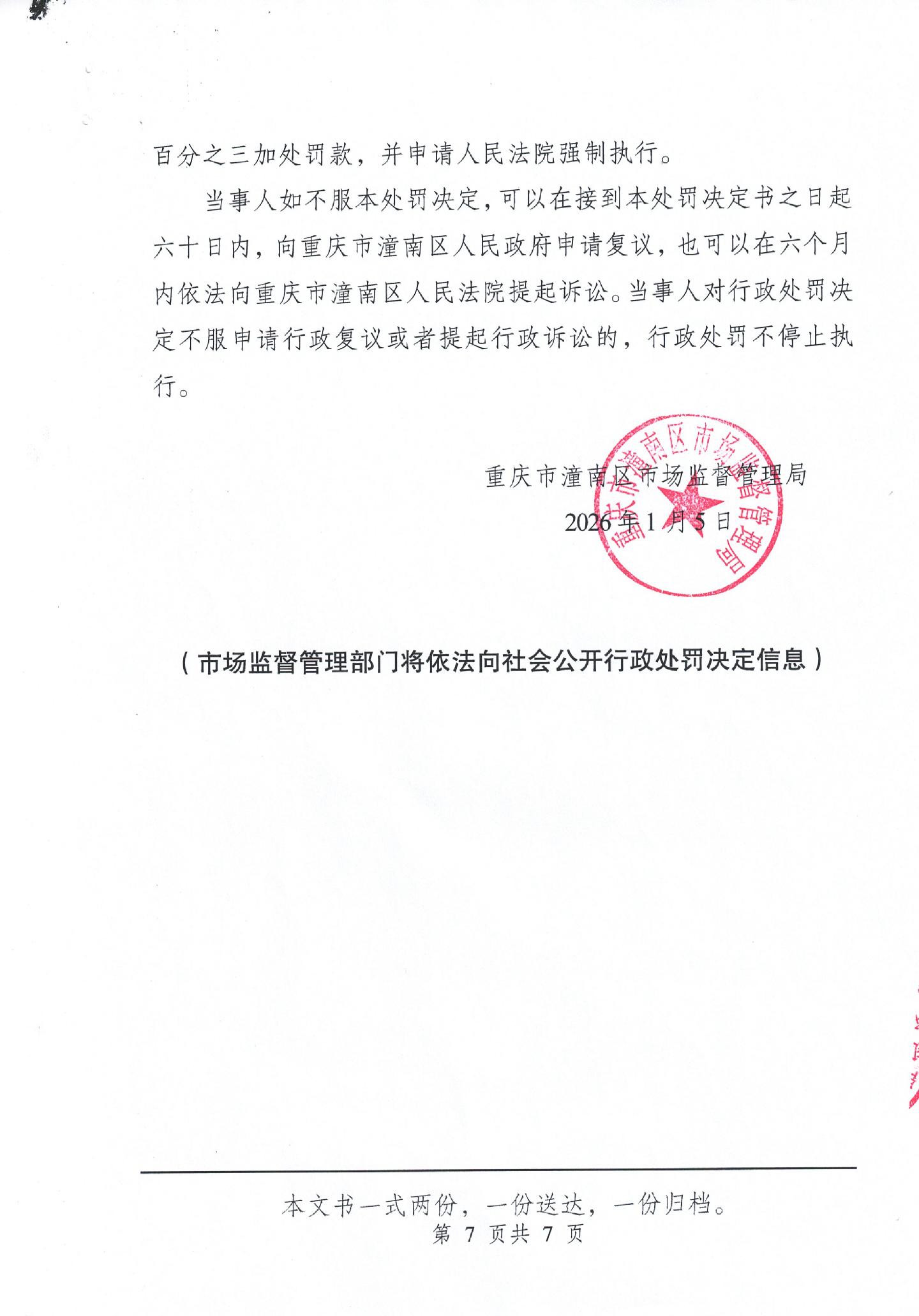 重庆市潼南区市场监督管理局行政处罚决定书(渝潼南市监处罚〔2026〕9号)