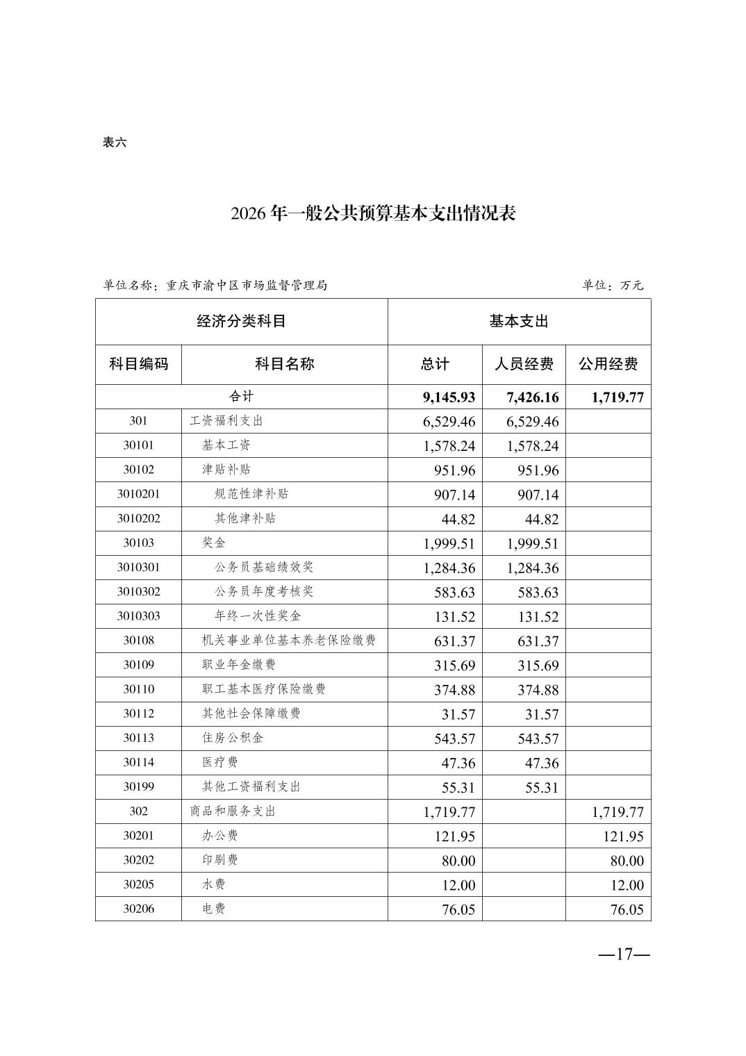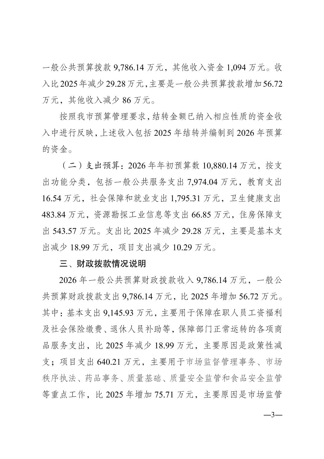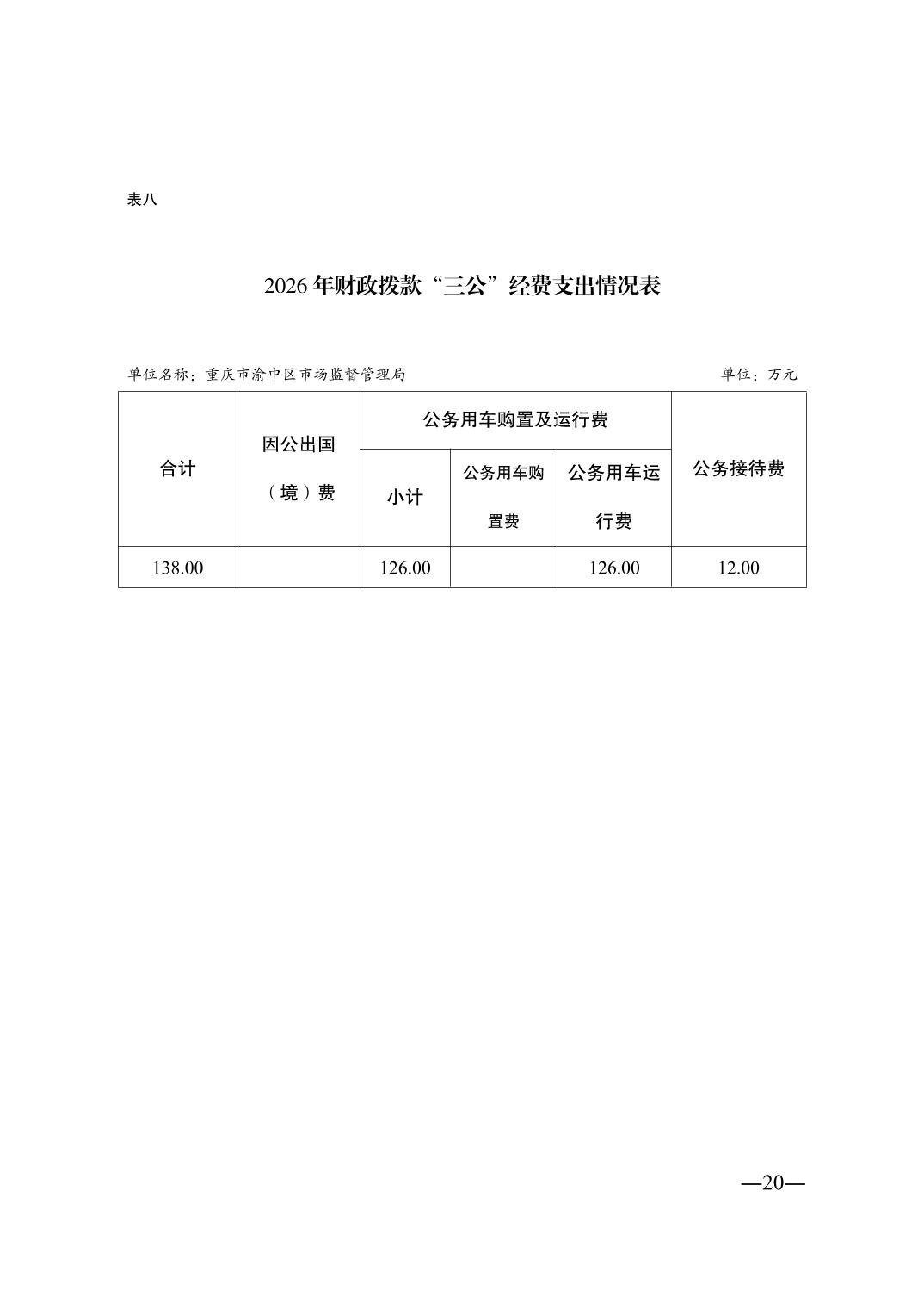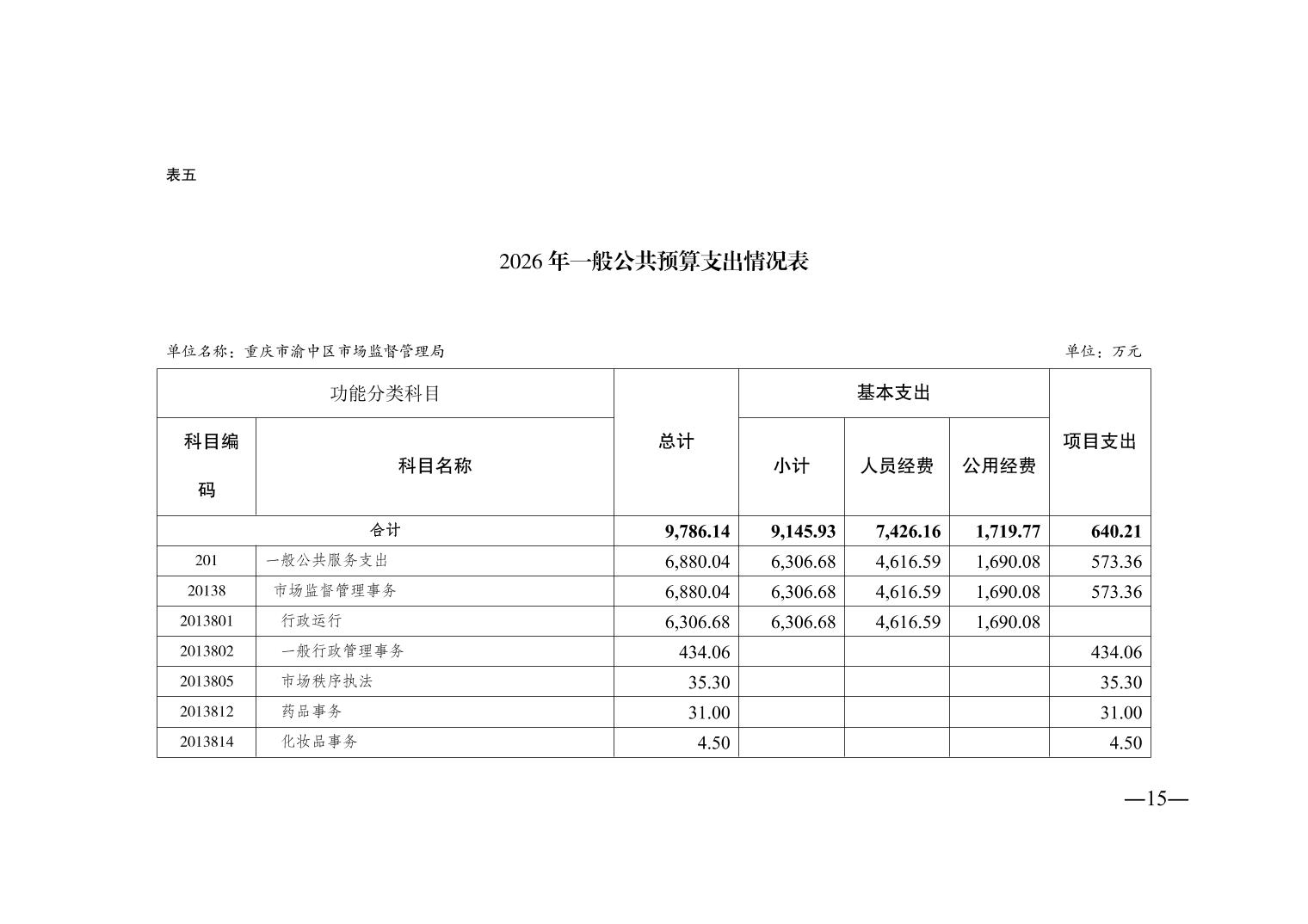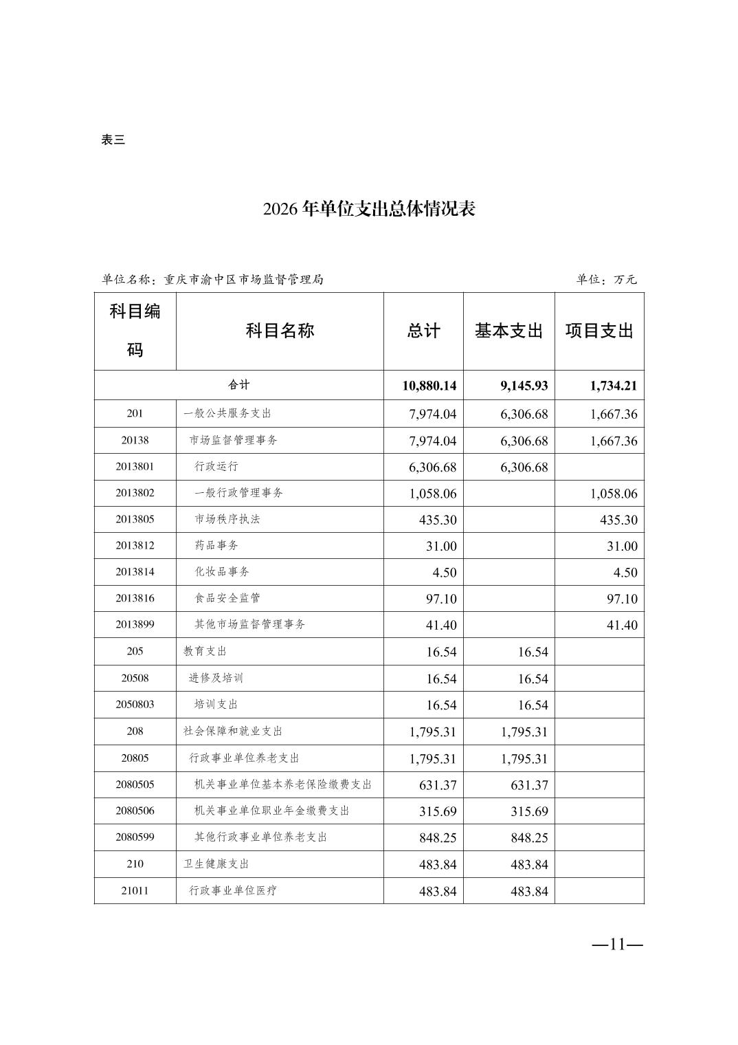 重庆市渝中区市场监督管理局2026年单位预算情况说明