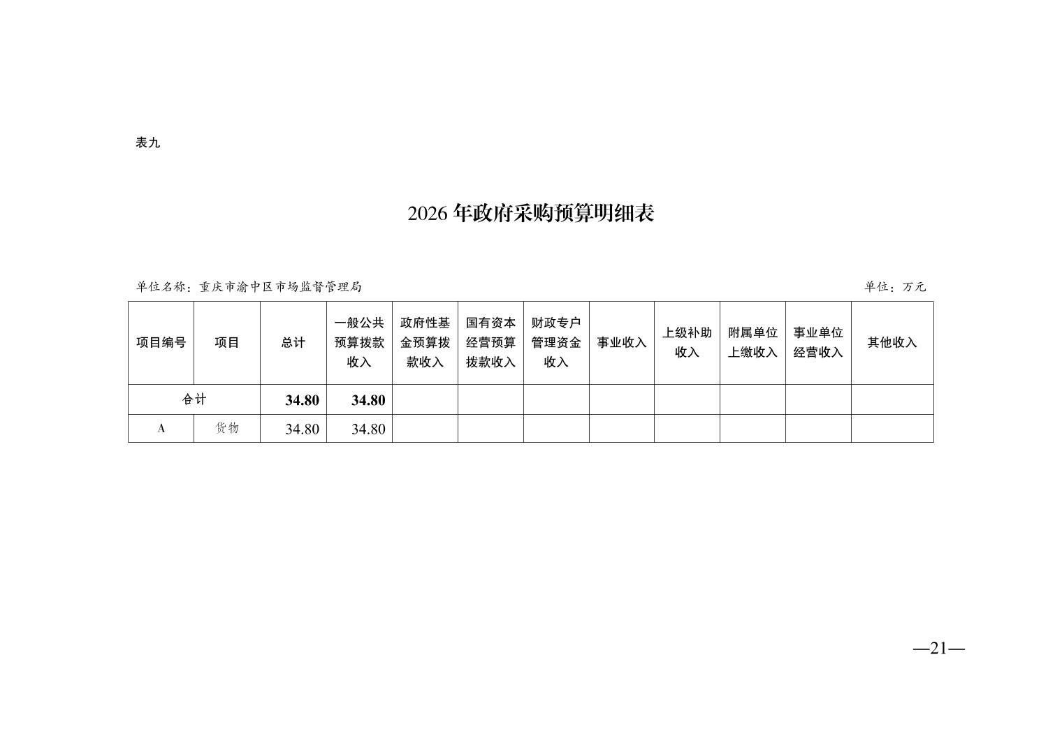 | [ 主题分类 ] | 市场监管、安全生产监管 | [ 体裁分类 ] | 财政预算、决算 |