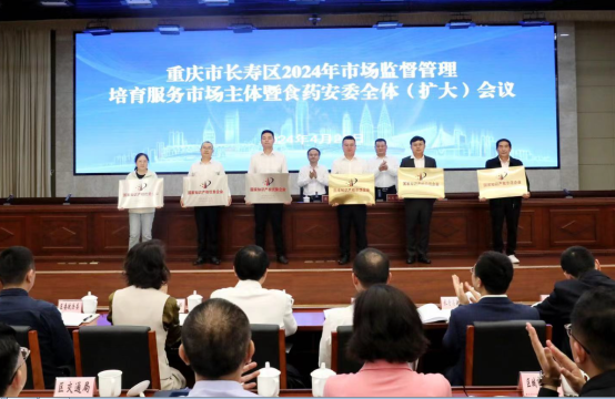 图为:2023年度长寿区获得国家级、市级知识产权示范优势、重庆专利银奖、优秀奖企业授牌仪式。